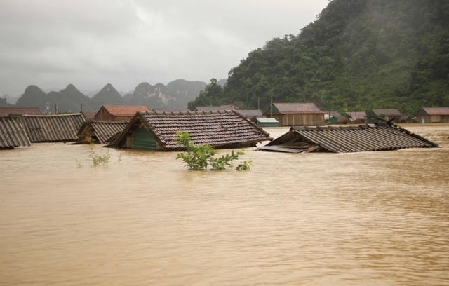 Theo báo cáo của Ban Chỉ đạo PCTT & TKCN tỉnh Quảng Bình chiều 9/10, tỉnh này có hơn 12.600 ngôi nhà bị ngập. Trong đó, huyện Lệ Thủy có hơn 7.600 nhà, huyện Quảng Ninh hơn 4.300 nhà. Tại “rốn lũ” Tân Hóa (huyện Minh Hóa), hơn 550 ngôi nhà đã bị ngập sâu từ 1m đến 2,5m, người dân phải chuyển sang tránh lũ trên những nhà phao.
