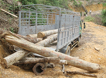 Tiếp tục theo dõi, nắm bắt tình hình, vào khoảng 14h ngày 13/8, trinh sát phát hiện các đối tượng đang sử dụng một chiếc xe ô tô tải đến khu rừng để vận chuyển số gỗ đã chặt hạ trước đó, đưa ra ngoài tiêu thụ.