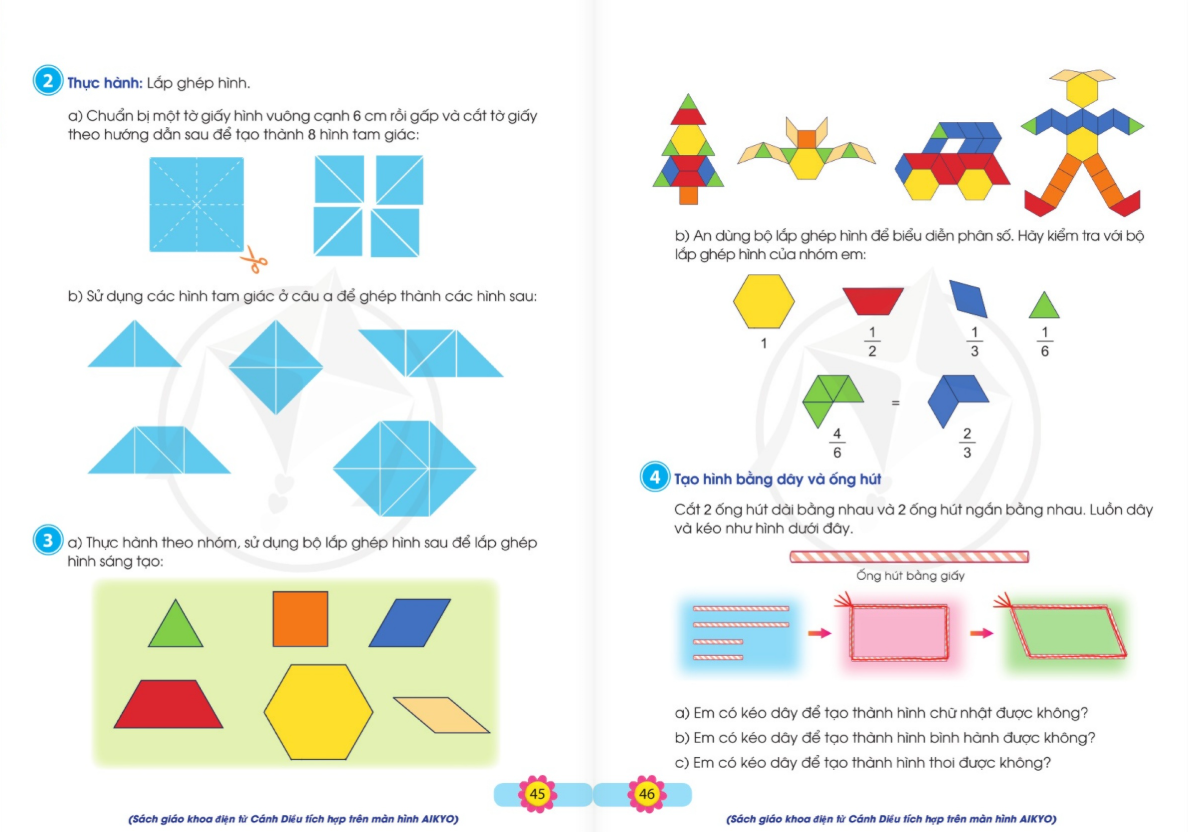 Các khái niệm toán học được lồng ghép vào hoạt động thực hành trực quan như lắp ghép hình khối, cắt dán, giải quyết tình huống thực tế,… khiến học sinh hứng thú hơn trong quá trình học tập. Ngoài ra, hình thức sách cũng được đánh giá cao nhờ bố cục mạch lạc, minh họa sinh động, tạo điều kiện thuận lợi cho giáo viên khi tổ chức dạy học.