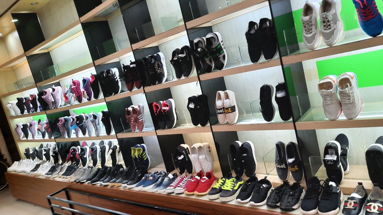 Tại đây, các mẫu túi xách, giày nữ, giày nam, giày trẻ em được bày ở những gian riêng, sang trọng. Trong đó, những mẫu giày mang thương hiệu như Nike, Adidas được bày ở kệ lớn choán hết dãy cuối của cửa hàng. Điêu đáng chú ý, những đôi giày mang các thương hiệu nổi tiếng thế giới được ghi giá từ 200-300 ngàn đồng/đôi.