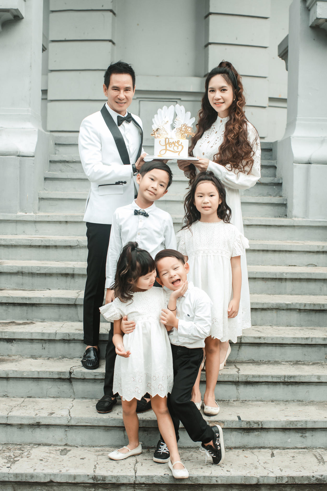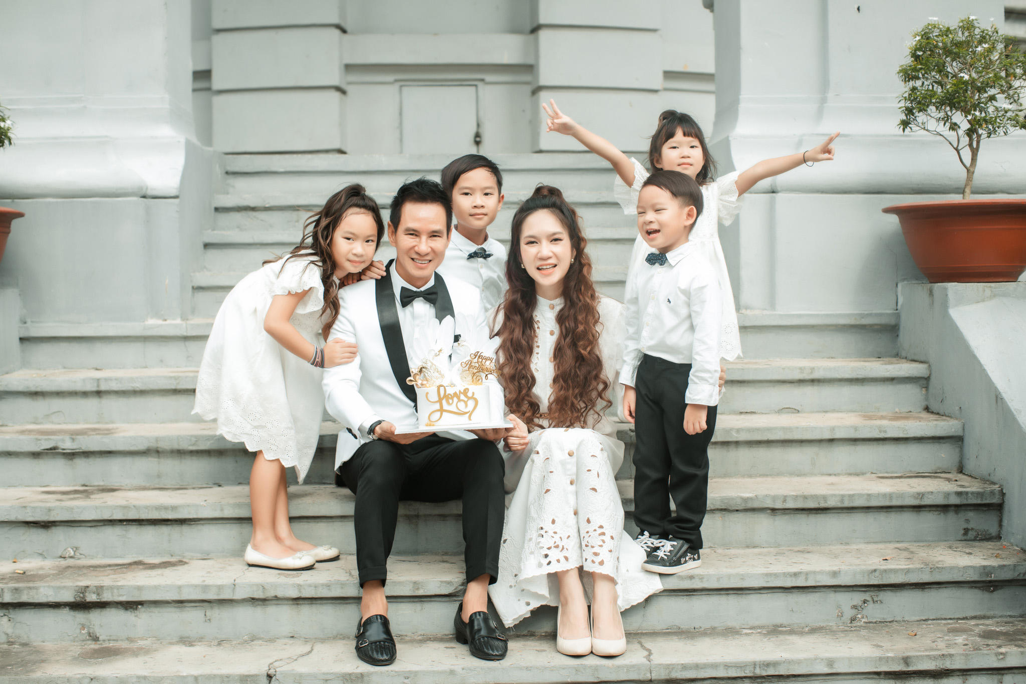 (PLVN) - Vợ chồng Lý Hải - Minh Hà diện đồ cô dâu chú rể hạnh phúc bên 4 thiên thần trong bộ ảnh kỷ niệm 10 năm ngày cưới.