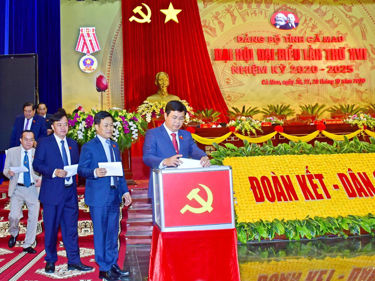 | Đại biểu tỉnh Cà Mau bỏ phiếu bầu Đoàn đại biểu đi dự Đại hội đại biểu toàn quốc lần thứ XIII của Đảng. |