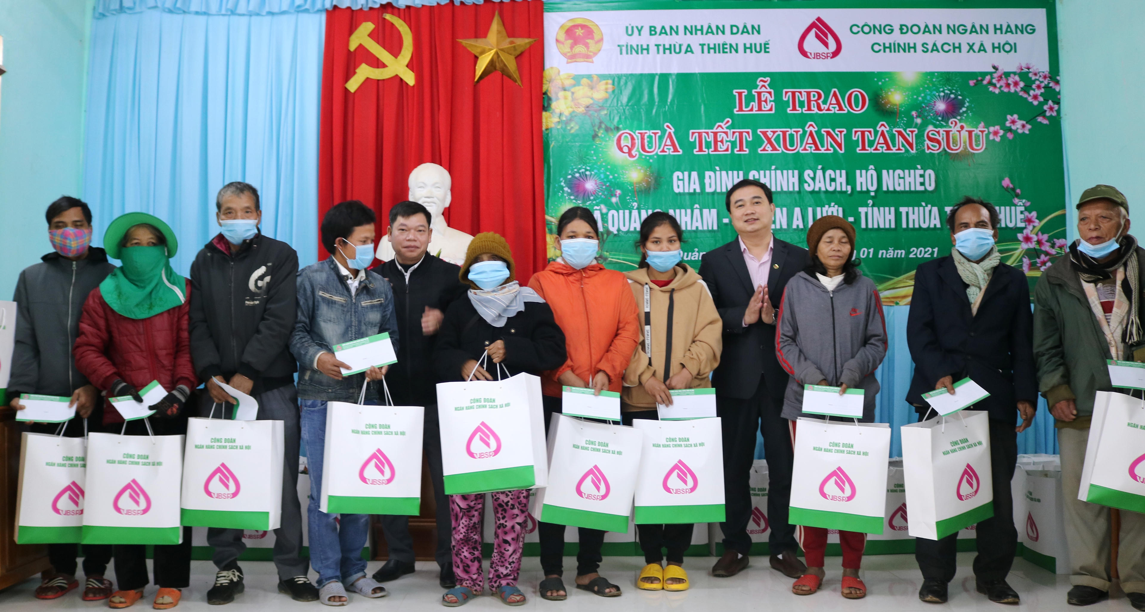 Tại tỉnh TT- Huế, Công đoàn NHCSXH đã trao tặng 300 suất quà cho các hộ nghèo và hộ gia đình chính sách tại xã Quảng Nhâm, huyện A Lưới. Mỗi suất quà trị giá 700.000 đồng, tổng giá trị quà tặng là 210.000.000 đồng.