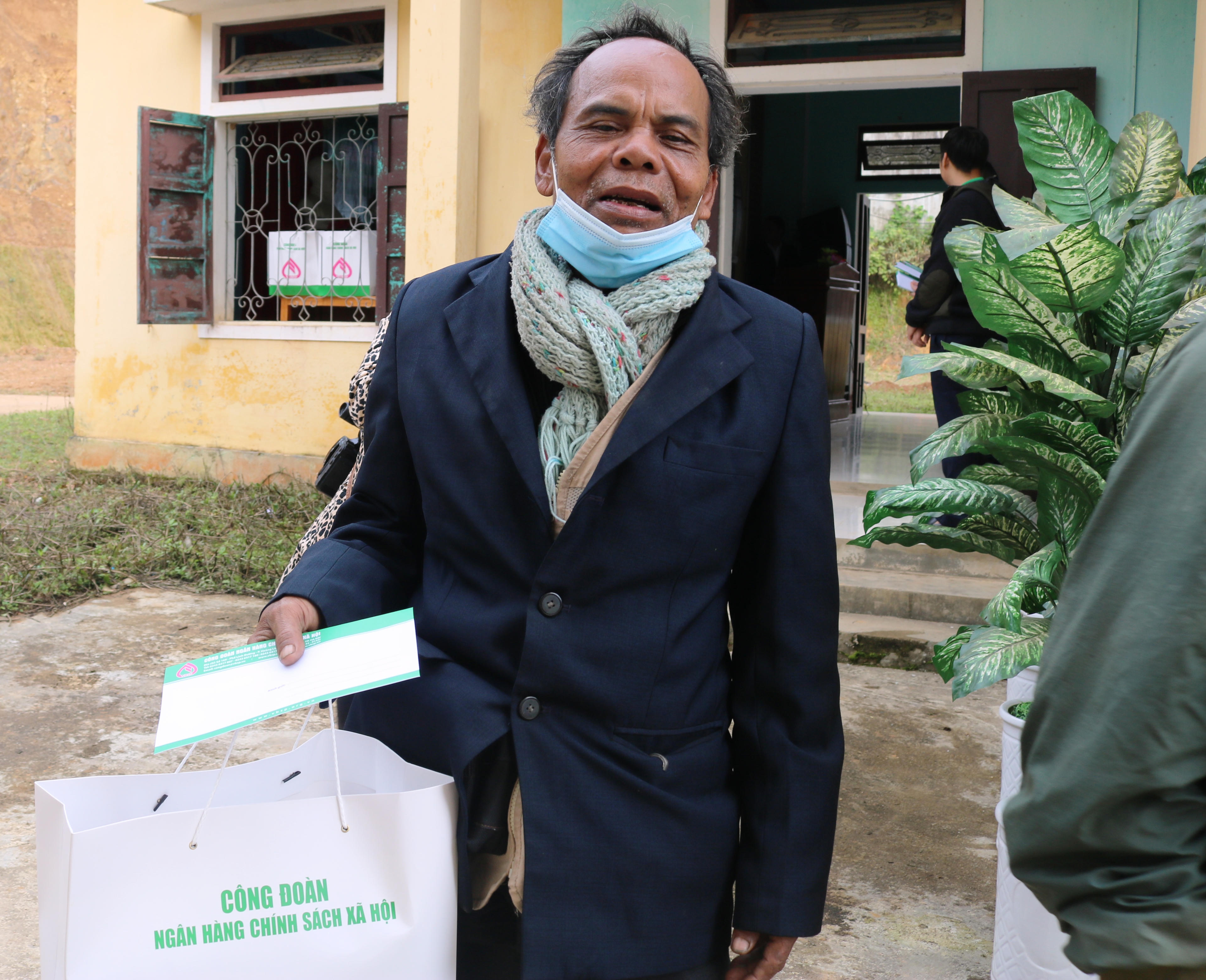 Hòa cùng với niềm vui đón nhận quà Tết, ông Hồ Văn Canh (80 tuổi, xã Quảng Nhâm, huyện A Lưới, tỉnh TT- Huế) chia sẻ: “Gia đình tôi thuộc hộ nghèo trong xã, nay được NHCSXH tặng quà đón Tết cổ truyền nên vui lắm, cảm ơn NHCSXH đã quan tâm đến những người dân nghèo như chúng tôi.”