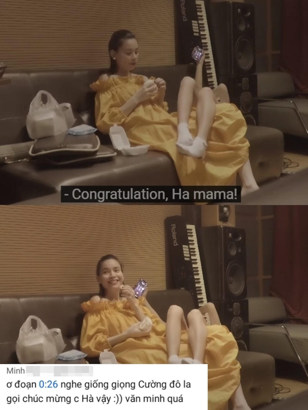 Trong trailer giới thiệu phim, người hâm mộ nhanh chóng nhận ra một khoảnh khắc đặc biệt, đó là khi Cường Đô La gọi điện chúc mừng vợ cũ vừa hạ sinh 2 em bé thành công. "Đại gia phố núi" xúc động nói: "Chúc mừng mẹ Hà sinh đôi nha". Nhìn nụ cười rạng rỡ Hà Hồ, người hâm mộ có thể yên tâm rằng nữ ca sĩ đang sống rất hạnh phúc trong tình yêu thương của Kim Lý và những người thân xung quanh, trong đó có cả chồng cũ.