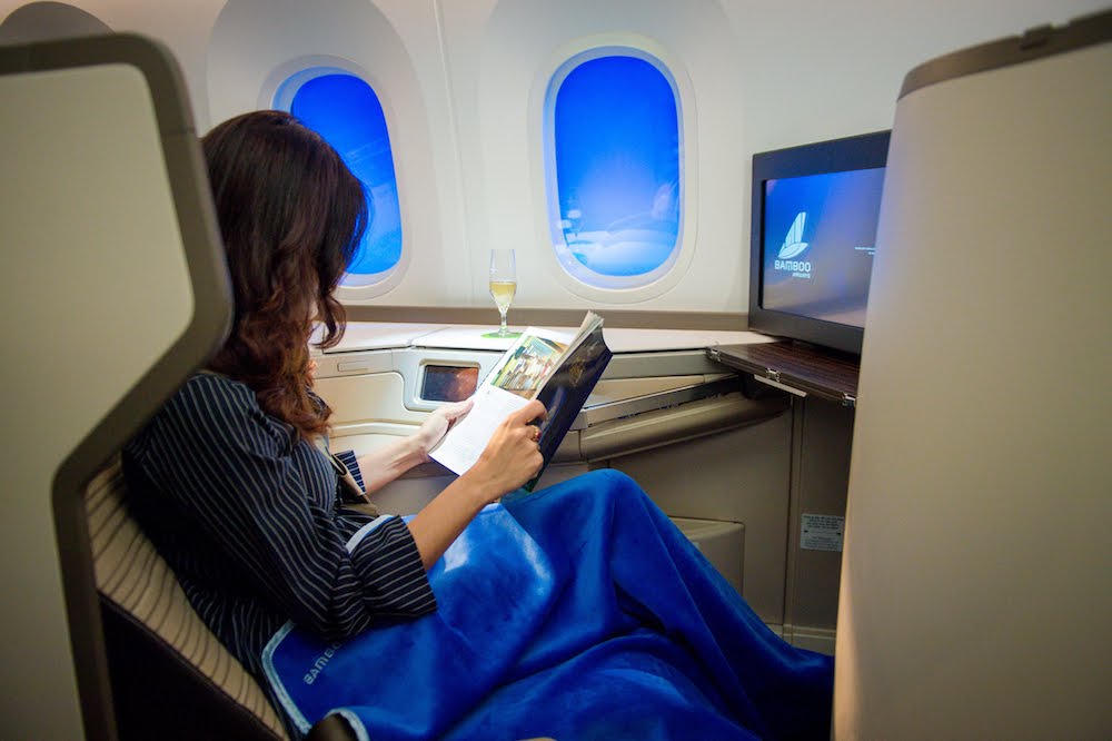 Khoang thương gia của Bamboo Airways được thiết kế hiện đại, với vách ngăn để tạo không gian riêng tư cho hành khách. Ghế ngồi có 3 chế độ duỗi ngả lưng, với khả năng duỗi 180 độ thành giường, cho phép hành khách thoải mái lựa chọn tư thế ngả lưng và duỗi chân trong suốt hành trình bay.