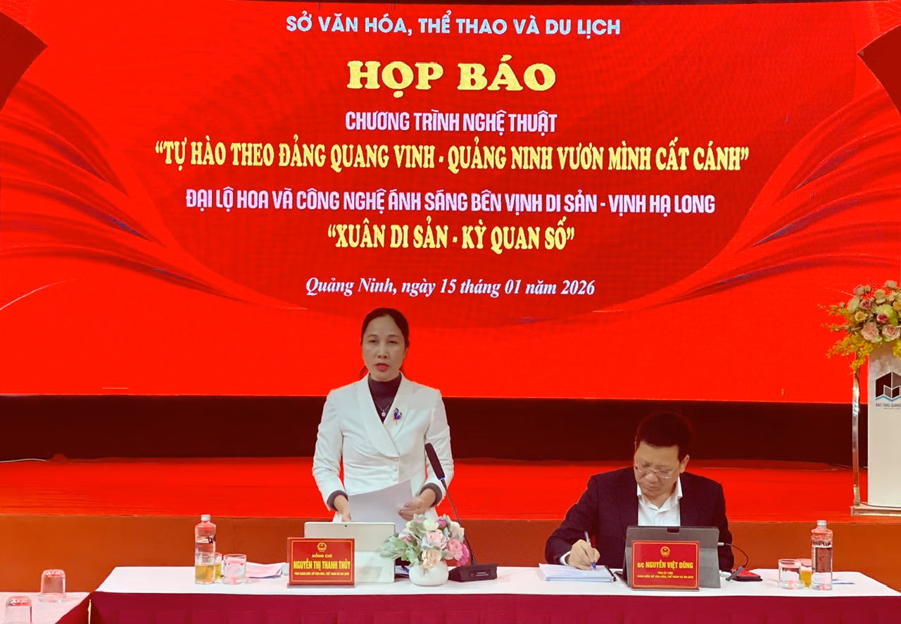 Ngày 15/1, tại phường Hạ Long, Sở Văn hóa, Thể thao và Du lịch tỉnh Quảng Ninh tổ chức Họp báo thông tin về chương trình nghệ thuật mừng Đại hội đại biểu toàn quốc lần thứ XIV của Đảng; chào mừng thành lập Đảng quang vinh và một số sự kiện văn hóa nổi bật khác trên địa bàn tỉnh.