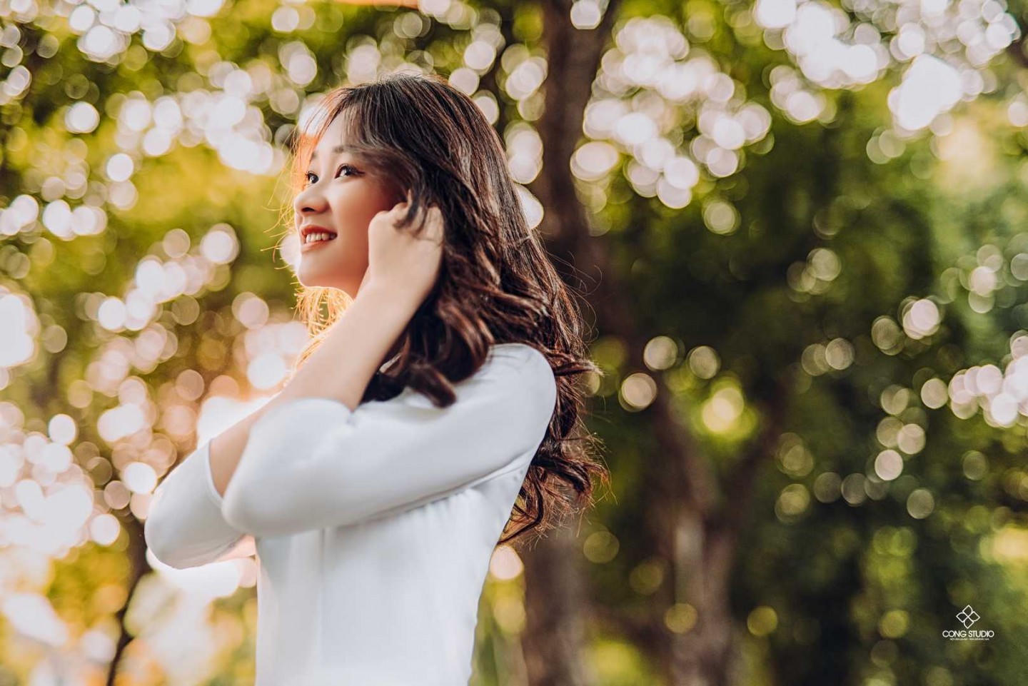 Bên này còn có các chị trung niên, ăn diện nom trẻ ra đến chục tuổi, cũng đua nhan sắc cùng mấy nhóm bạn trẻ, sinh viên đứng gốc cây kia. Nghe nói gốc cây đã hơn hai trăm tuổi, trước ngôi biệt thự xám rêu. Họ mặc áo dài trắng, màu tinh tuyền đi đứng duyên dáng để những chàng nghệ sĩ nhiếp ảnh tha hồ trổ tài. Nụ cười phơi phới trên môi.