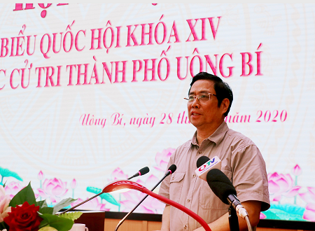 Tại buổi tiếp xúc, Trưởng Ban Tổ chức Trung ương, Đại biểu Quốc hội tỉnh Quảng Ninh Phạm Minh Chính thông tin về tình hình phát triển kinh tế - xã hội của đất nước 6 tháng đầu năm và kết quả Kỳ họp thứ 9, Quốc hội khóa XIV. Sau 19 ngày làm việc khẩn trương, nghiêm túc, với tinh thần dân chủ, trí tuệ và trách nhiệm, Quốc hội đã thông qua 10 luật, 21 nghị quyết, cho ý kiến vào 6 dự án luật; quyết định thành lập Hội đồng Bầu cử Quốc gia.