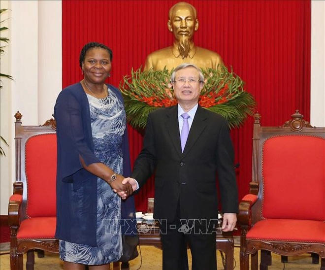 Thường trực Ban Bí thư Trần Quốc Vượng tiếp bà Emilia Moiane.