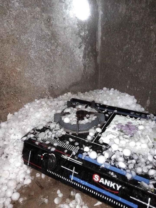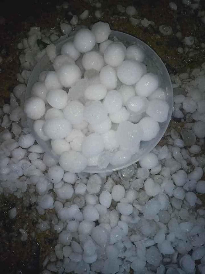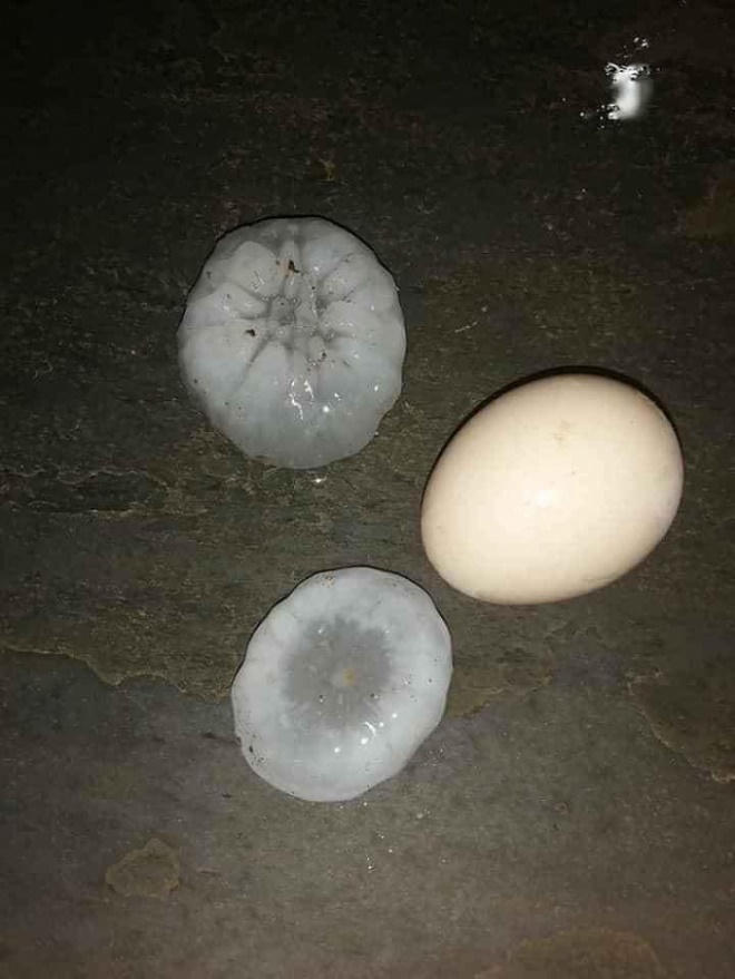 Những hạt mưa đá có kích thước rất lớn, từ 3-5cm, có những hạt “khổng lồ” to bằng quả trứng gà. Mưa đá khiến nhiều ngôi nhà mái ngói và tấm lợp xi măng của người dân bị hư hỏng nặng.