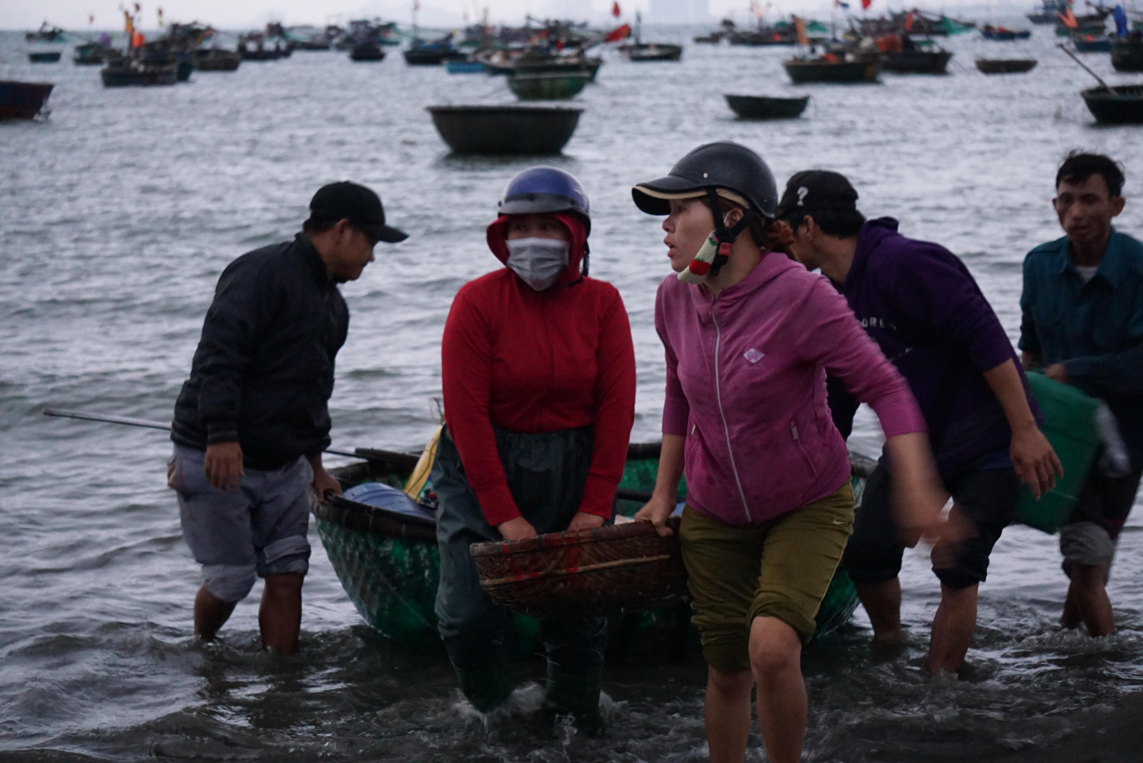 Ngư dân và thương lái dịch mua bán ngay tại bãi biển.