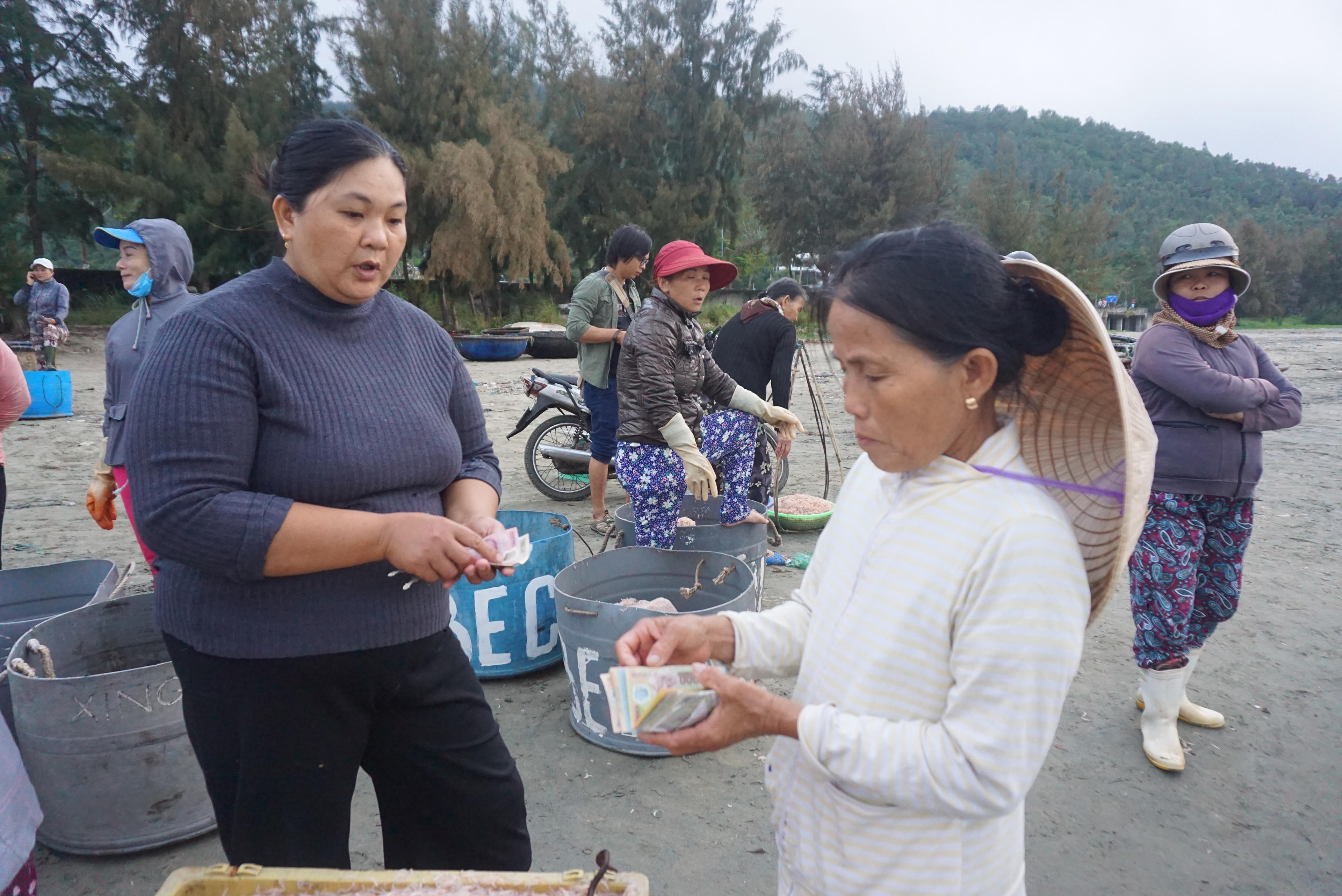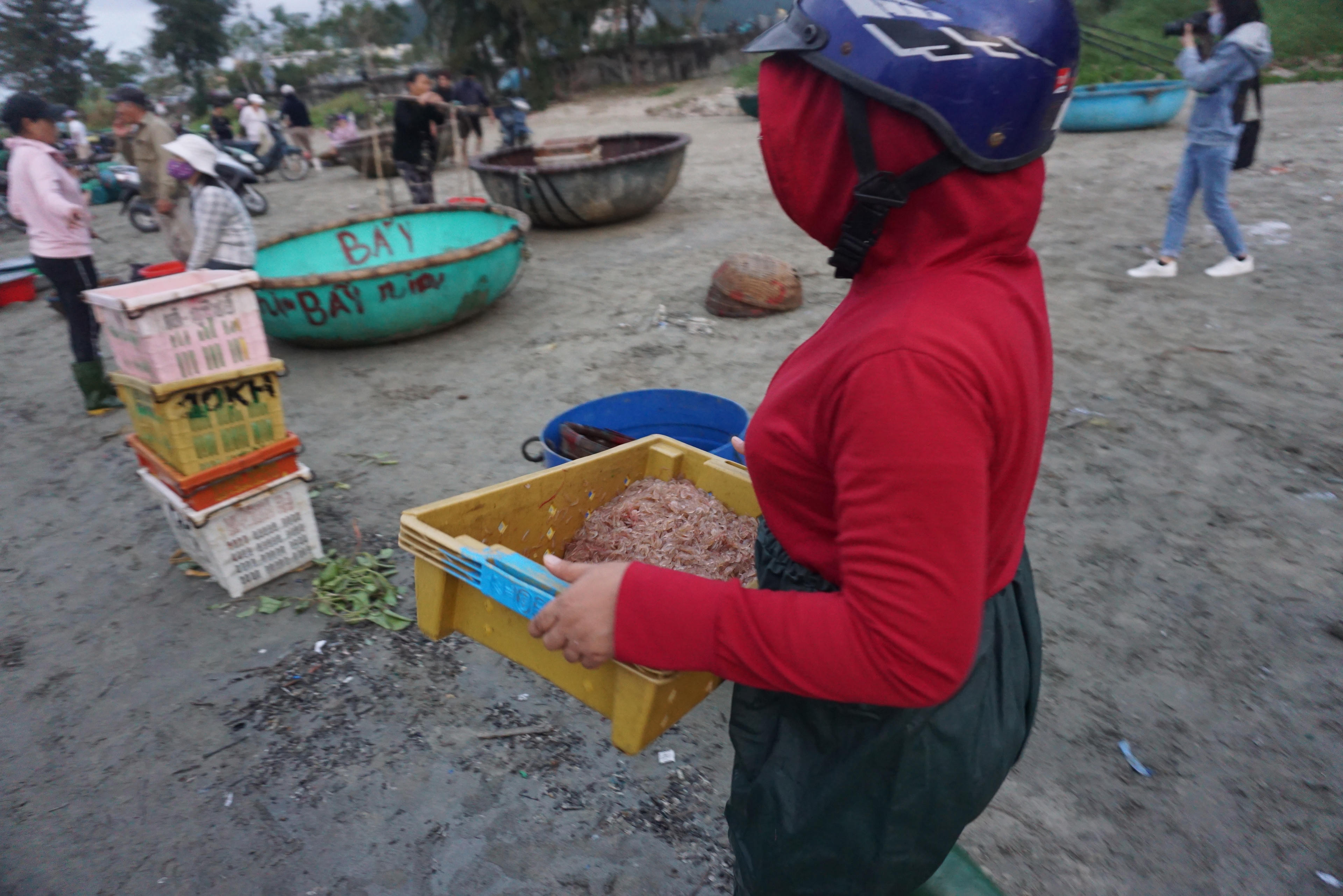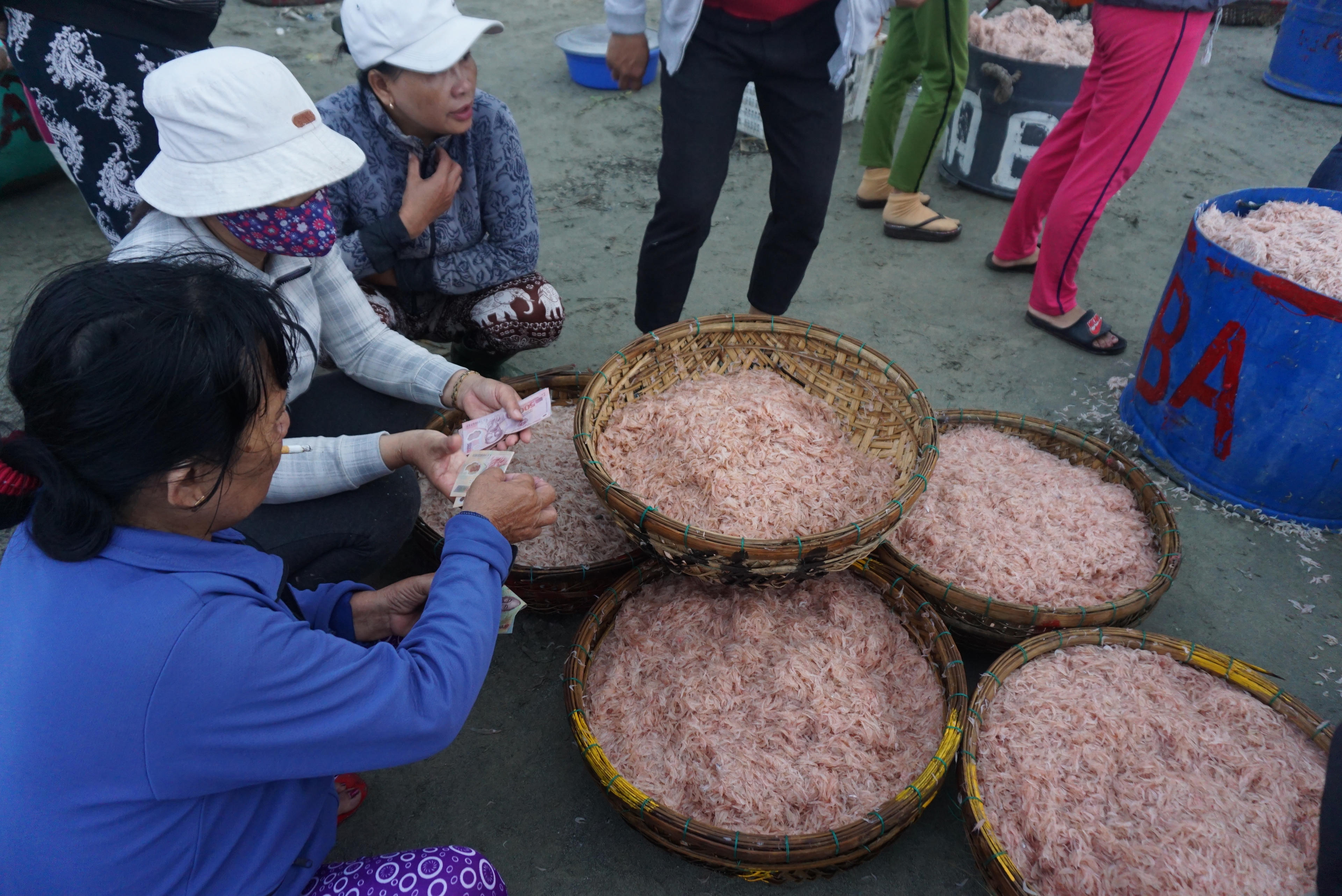 Từng thúng ruốc được mua bán ngay khi lên bờ