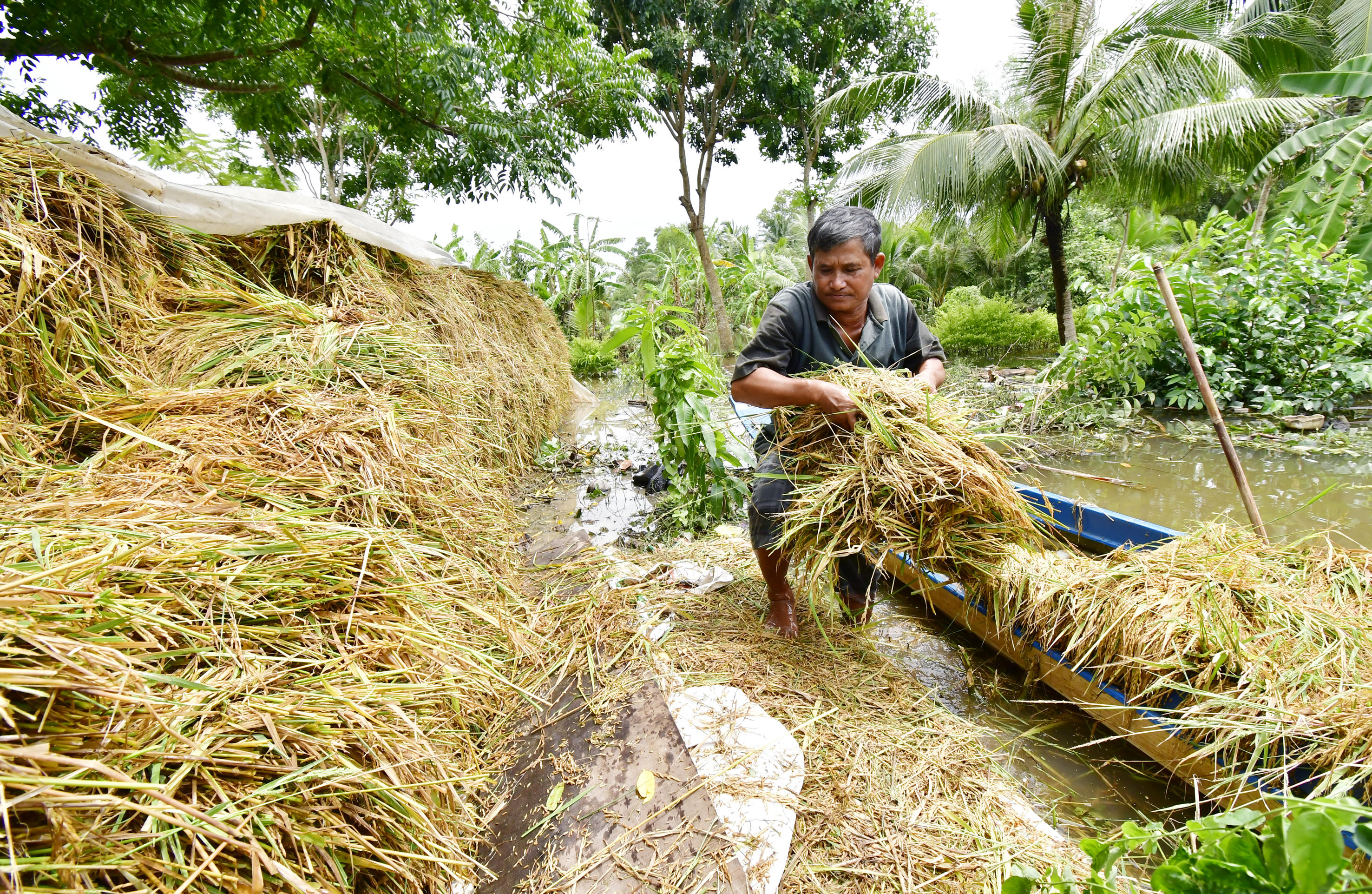 Cùng nỗi lòng với chị Út, anh Phạm Minh Chiếm (cùng ấp 4, xã Khánh Bình Đông, Trần Văn Thời, Cà Mau) bộc bạch: "Tôi rớt nước mắt, trong khi đống lúa ngập mang vào nhà cũng đã mấy ngày, ra mộng cũng nhiều rồi, bấm bụng mà chịu. Bỏ thì không nỡ, mà khi thu hoạch, không tính công sức nhọc nhằn của nghề nông trong mấy tháng trời, chấp nhận chịu lỗ nặng…".