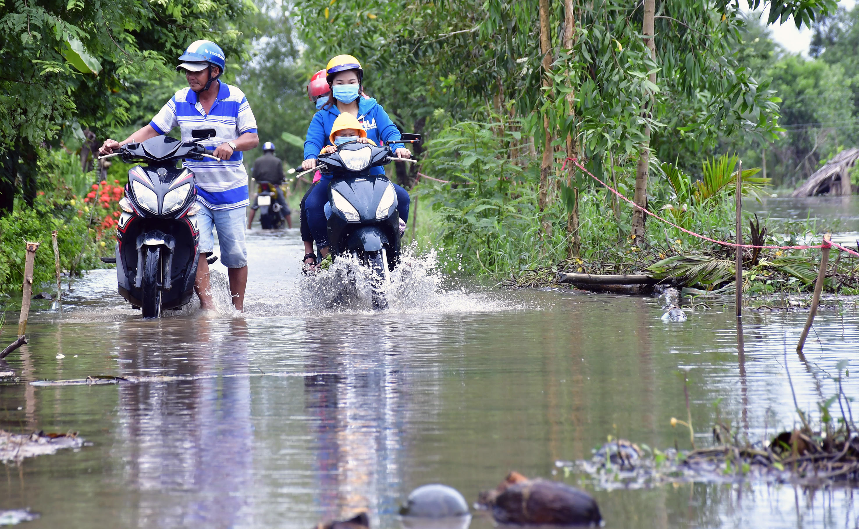 Đường giao thông bị ngập gây ảnh hưởng đến việc đi lại, nguy cơ tai nạn là rất lớn.