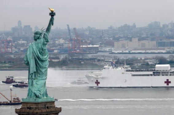 Hải quân Mỹ vừa phái tàu bệnh viện USNS Comfort đến New York để hỗ trợ thành phố đối phó dịch bệnh Covid-19.