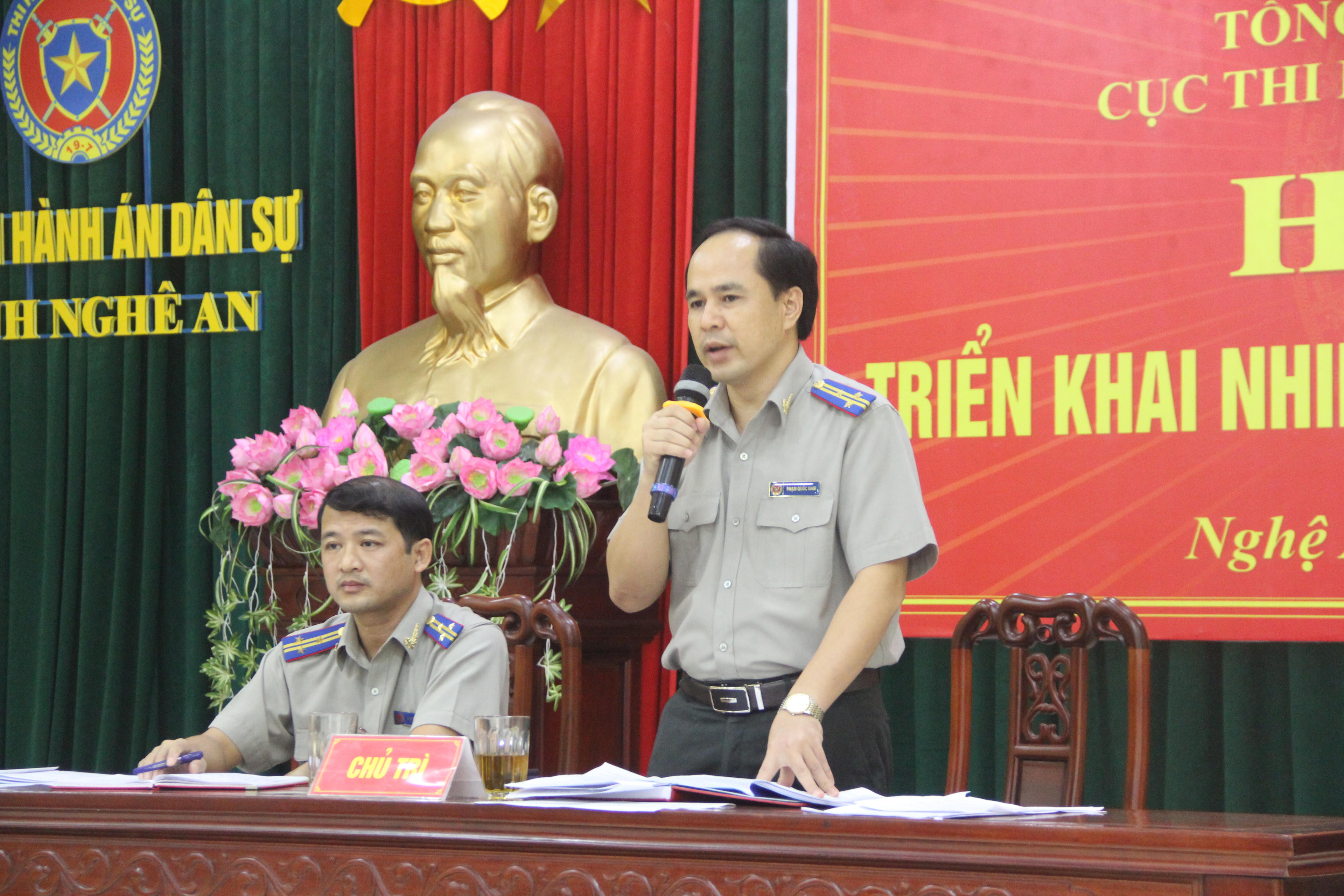 Tại hội nghị, Cục trưởng Cục THADS Nghệ An Phạm Quốc Nam đã đưa ra một số nhiệm vụ trọng tâm quý 1/2021 và giải pháp thực hiện chỉ tiêu, nhiệm vụ năm 2021. Theo đó, tập trung đẩy mạnh THADS ngay từ những ngày đầu, tháng đầu, quý đầu của năm công tác. Xác định quý 1/2021 là một trong những quý trọng tâm để tổ chức thi hành án. Vì vậy yêu cầu các đơn vị phải tập trung triển khai nhiệm vụ một cách tích cực, khẩn trương.