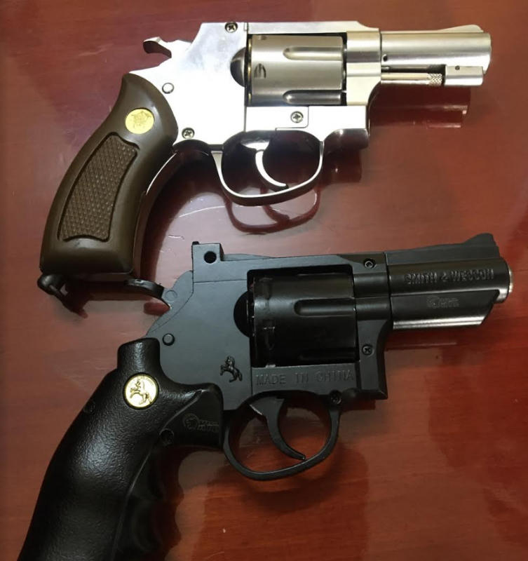 2 khẩu súng ngắn là tang vật thu giữ được khi khám xét phòng trọ của đối tượng Hoàng Trung Anh