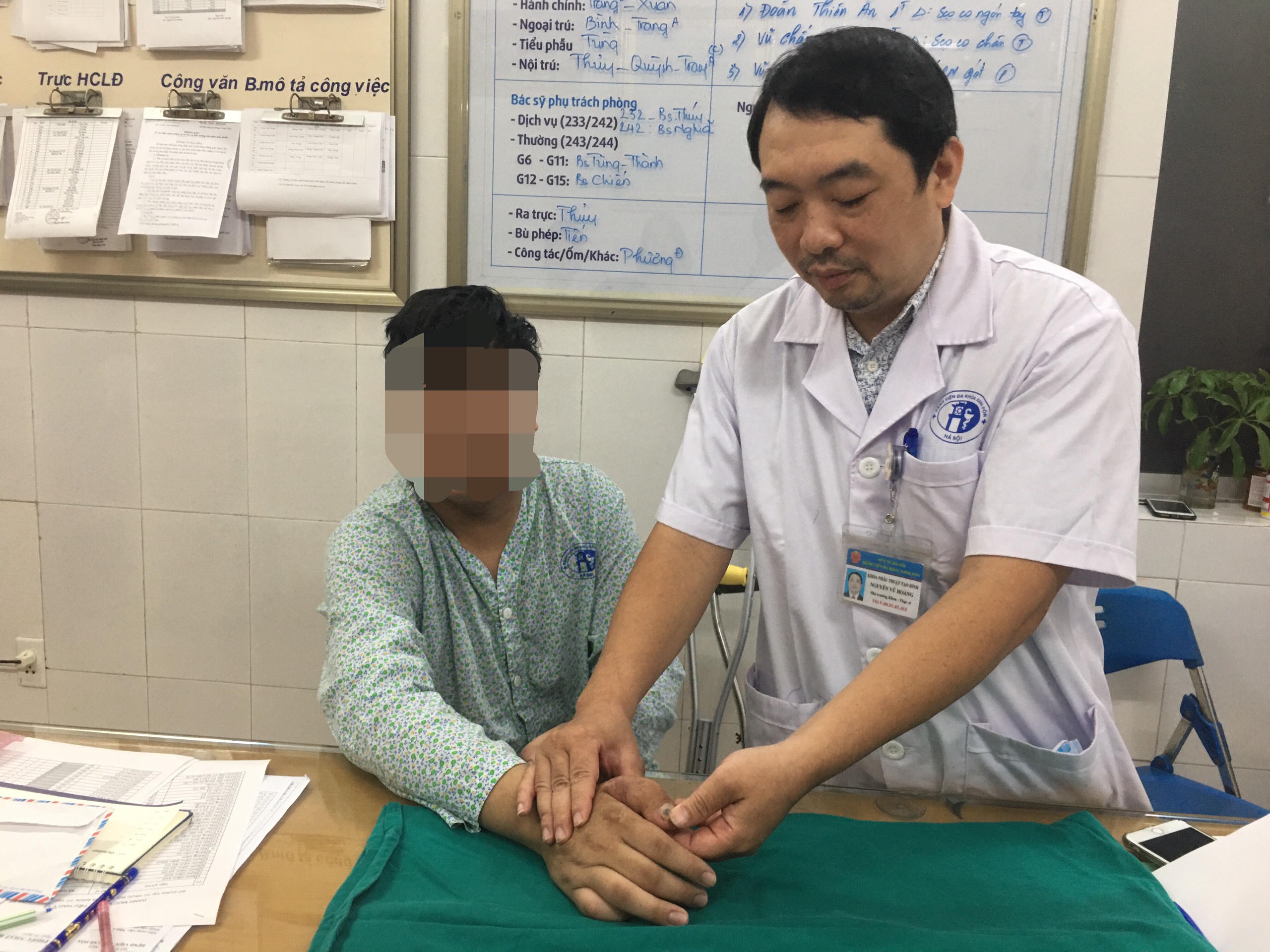 "Đây là ca phẫu thuật chuyển da tự thân đầu tiên được thực hiện tại bệnh viện, dưới hình thức chuyển da mô mềm, mạch máu thần kinh và gân, không có xương. Tại Việt Nam, chúng tôi chưa thấy có tác giả nào báo cáo", bác sĩ Hoàng cũng cho biết thêm.