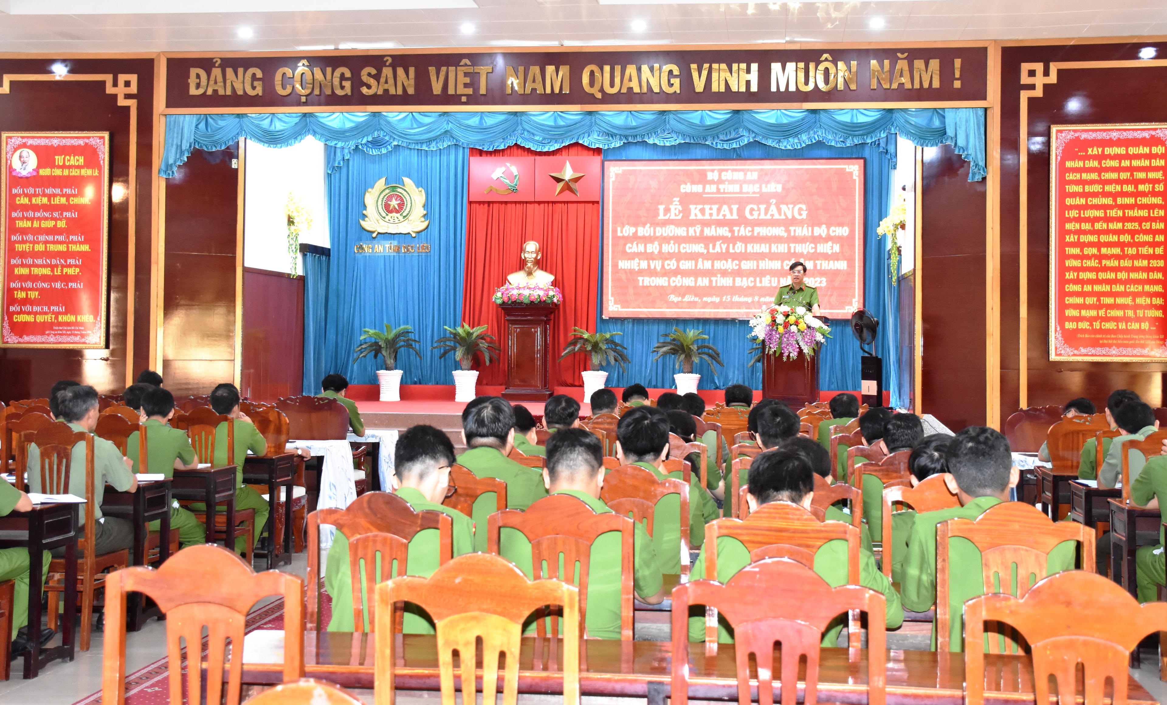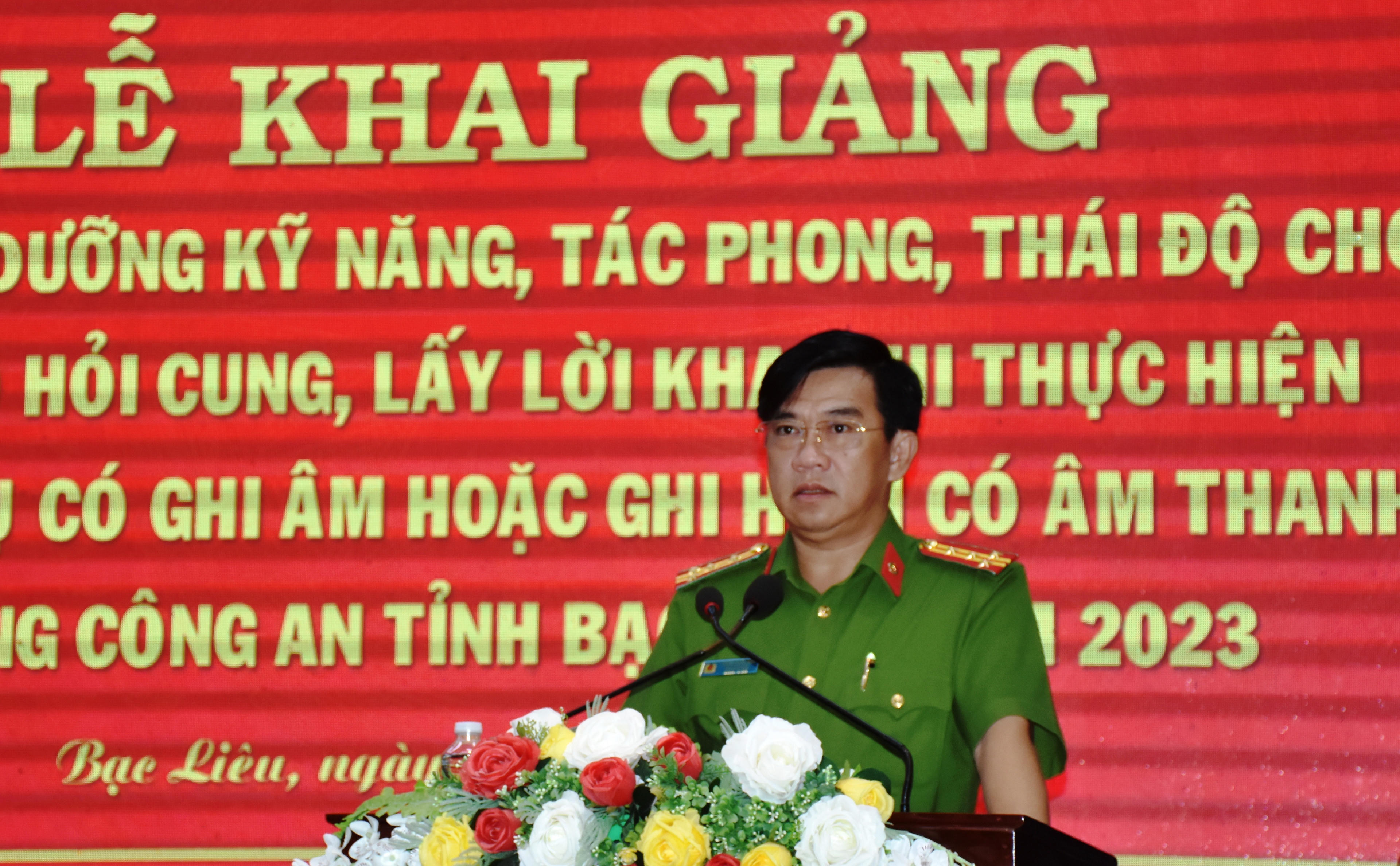 Phát biểu tại lớp bồi dưỡng, Đại tá Châu Quốc Huy - Phó Giám đốc Công an tỉnh Bạc Liêu, đề nghị các học viên phải bám sát các nội dung, chương trình, lớp bồi dưỡng do Ban Tổ chức đề ra; chấp hành nghiêm điều lệnh Công an nhân dân và nội quy lớp học; tích cực trao đổi, thảo luận về nội dung, chương trình bồi dưỡng; kịp thời tháo gỡ những khó khăn, vướng mắc trong thực tiễn công tác hỏi cung, lấy lời khai khi thực hiện nhiệm vụ có ghi âm hoặc ghi hình có âm thanh, từ đó mỗi học viên sẽ trang bị cho mình những kiến thức, kỹ năng cần thiết góp phần vào công tác đấu tranh phòng, chống tội phạm trên địa bàn”.