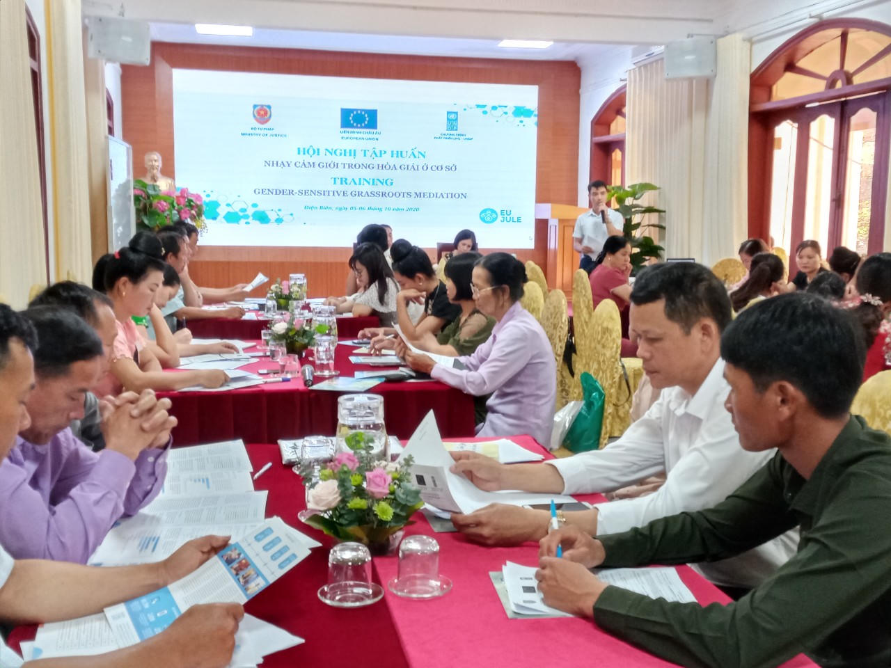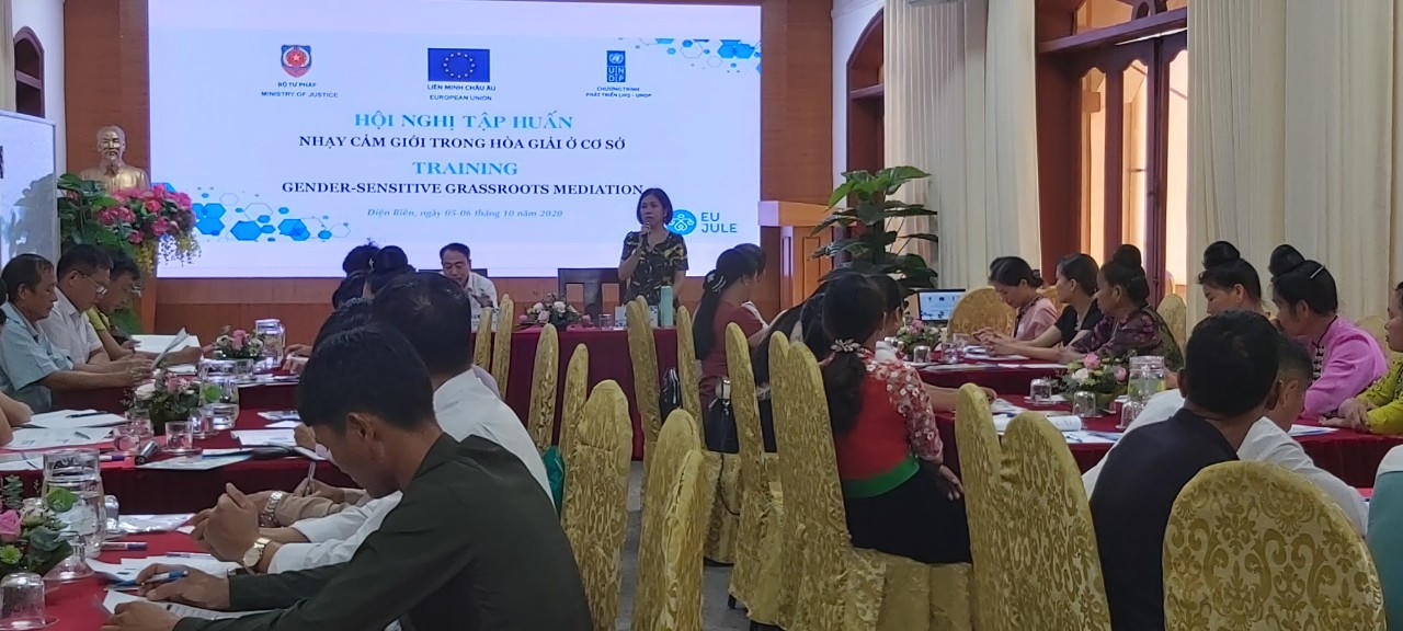 (PLVN) -Trong hai ngày 05-06/10/2020, Vụ Phổ biến, giáo dục pháp luật, Bộ Tư pháp phối hợp với Sở Tư pháp tỉnh Điện Biên tổ chức Hội nghị tập huấn nhạy cảm giới trong hòa giải ở cơ sở cho 30 hòa giải viên của huyện Điện Biên và huyện Mường Chà.
