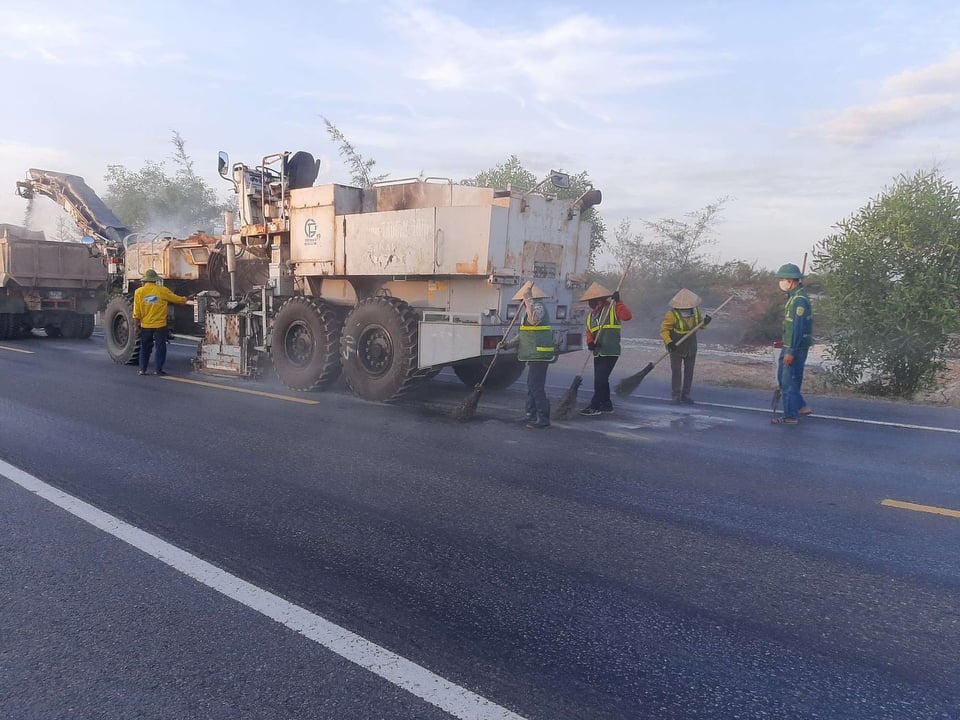 Công ty TNHH MTV BOT  Trường Thịnh đang tích cực sửa chữa khắc phục tại tuyến đường tránh đi qua huyện Lệ Thuỷ giữa trời nắng nóng.