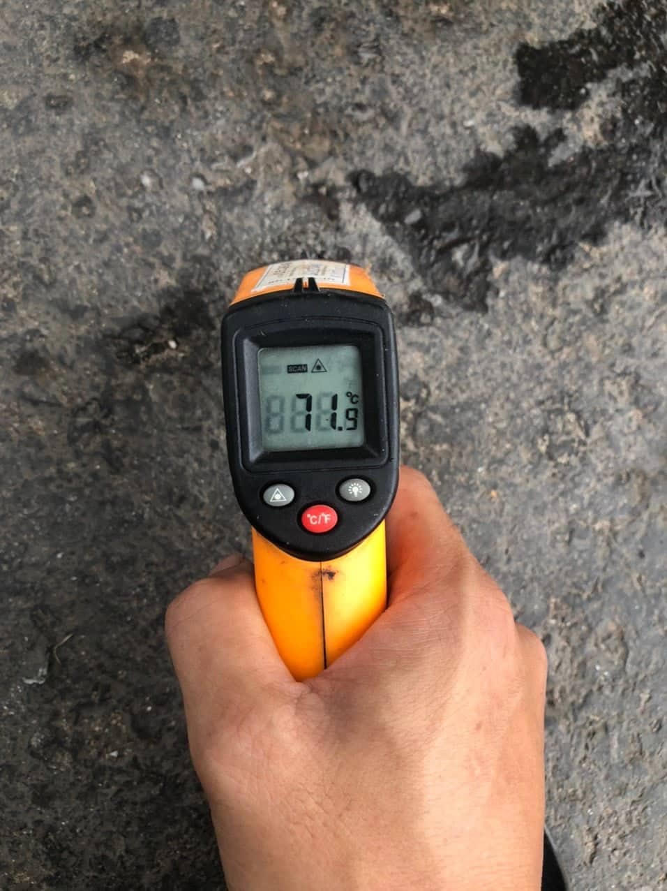 Hình ảnh đo nhiệt độ ngoài đường tại mặt đường tránh Lệ Thuỷ.
