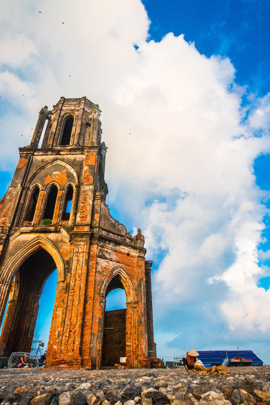 Mỗi khi thủy triều lên thì nhà thờ đổ bị ngập nước khoảng 1m. Khi thủy triều rút lại trả lại vẻ đẹp điêu tàn và vắng vẻ, cổ kính của nhà thờ. Nơi đây là điểm đến hấp dẫn đối với nhiều du khách, nhiếp ảnh gia ưa trải nghiệm, khám phá. Đây cũng là điểm tựa của ngư dân- chứng kiến những cuộc ra khơi và đoàn thuyền về no ấm tôm cá đầy khoang của ngư dân, chứng kiến những hoạt động của tự nhiên xoay vòng mỗi ngày.