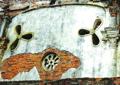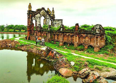 Các bức tượng của nhà thờ hầu như đã bị vỡ nát. Nhiều mảng đổ sập xuống nằm sâu dưới cát biển hoặc đã bị sóng cuốn, cát vùi. Cây cỏ, rêu phong mọc đầy trên những bức tường của nhà thờ. Những dấu tích nay trơ trọi như những ốc đảo, trước sự bao quanh của nước biển.