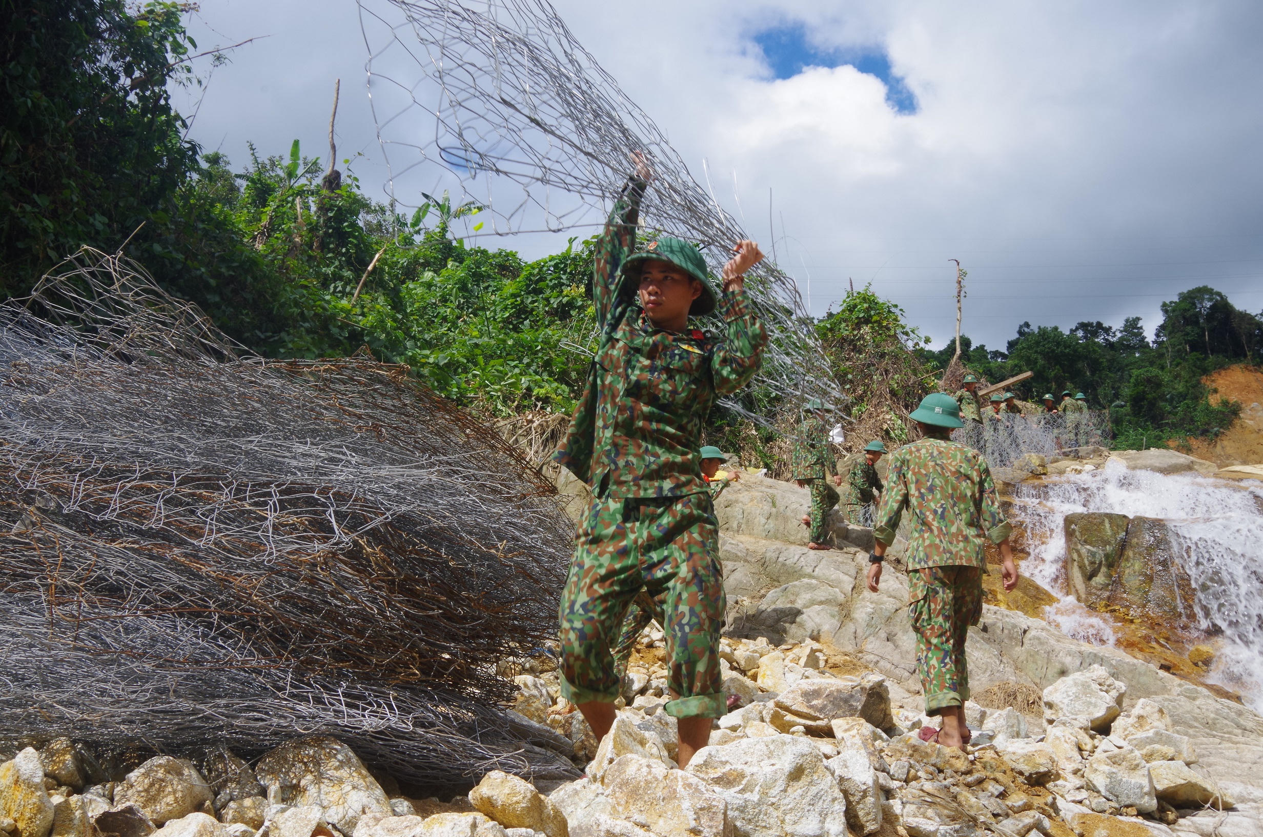 (PLVN) - Tin từ Bộ Chỉ huy Quân sự tỉnh Thừa Thiên Huế, hơn 200 cán bộ, chiến sĩ lực lượng quân đội, công an, biên phòng và các lực lượng khác tập kết nguyên vật liệu ngăn sông, xẻ núi để tìm kiếm 12 công nhân còn mất tích.