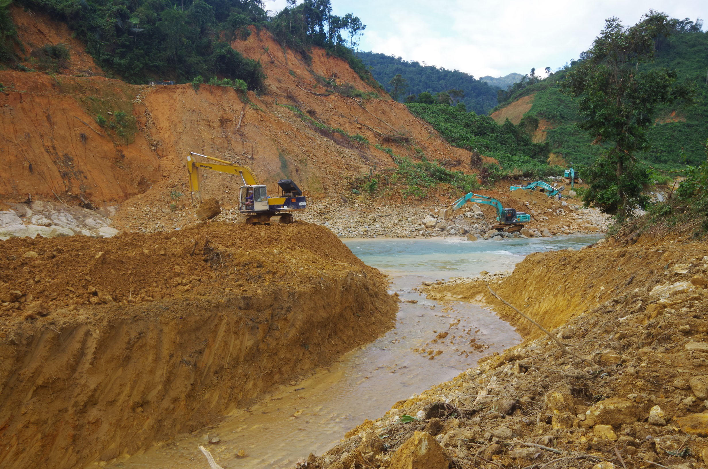 Do địa hình hiểm trở, thời gian các công nhân bị vùi lấp đã hơn một tháng, số lượng đất đá sạt lở quá lớn nên lực lượng tìm kiếm vừa sử dụng máy múc, vừa sử dụng cuốc, xẻng để nạo vét, đắp bờ, ngăn dòng.
