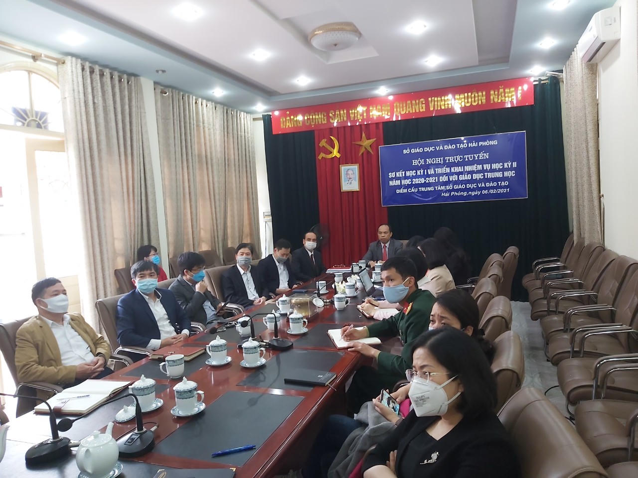 Trong cuộc họp trực tuyến giữa lãnh đạo Sở Giáo dục & Đào tạo TP Hải Phòng và các trường THPT, các phòng giáo dục vừa được tổ chức, Giám đốc Sở GD&ĐT TP Hải Phòng Lê Quốc Tiến đã chỉ đạo các đơn vị giáo dục quyết liệt triển khai những biện pháp phòng chống dịch bệnh Covid-19.