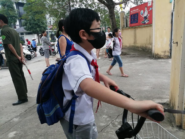 Học sinh nghiêm túc đeo khẩu trang khi vào trường học