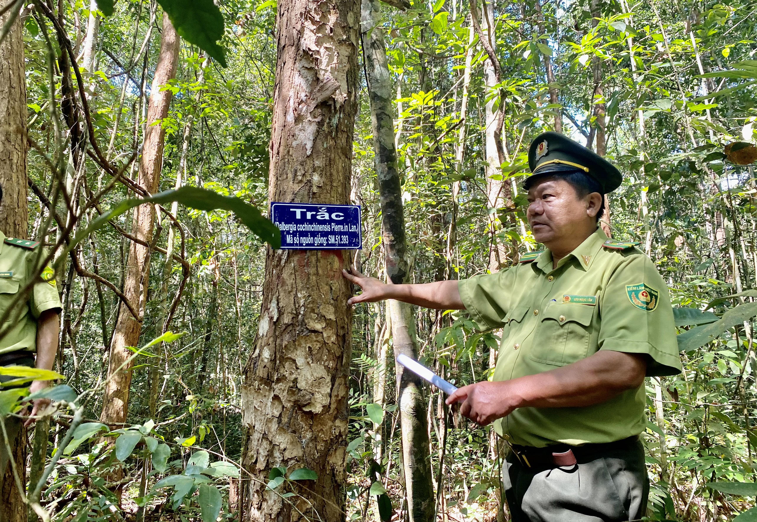 Bên cạnh gỗ Trắc thì những cây gỗ nhóm 1 như gõ mật, giáng hương cũng được Ban Quản lý Rừng Phòng hộ Tân Phú kiểm soát, bảo vệ rất nghiêm ngặt.
