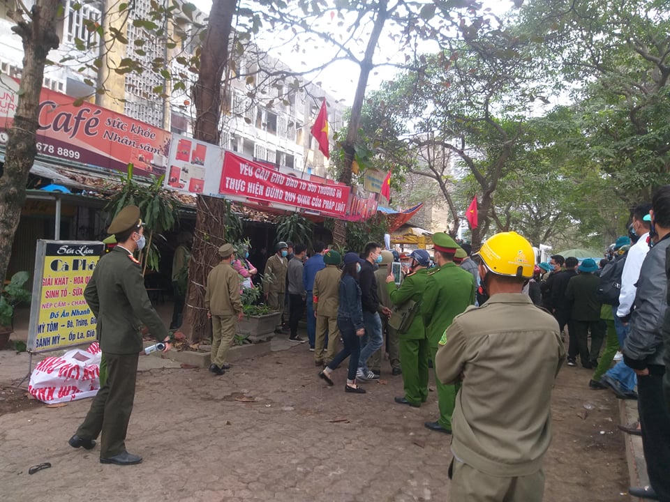 Ghi nhận tại hiện trường, việc cưỡng chế thực hiện theo đúng quy trình, quy định của pháp luật. Sau khi đọc các quyết định liên quan đến việc cưỡng chế, lực lượng chức năng đã tiến hành phá dỡ các lều bạt trước khu vực các tòa chung cư này.