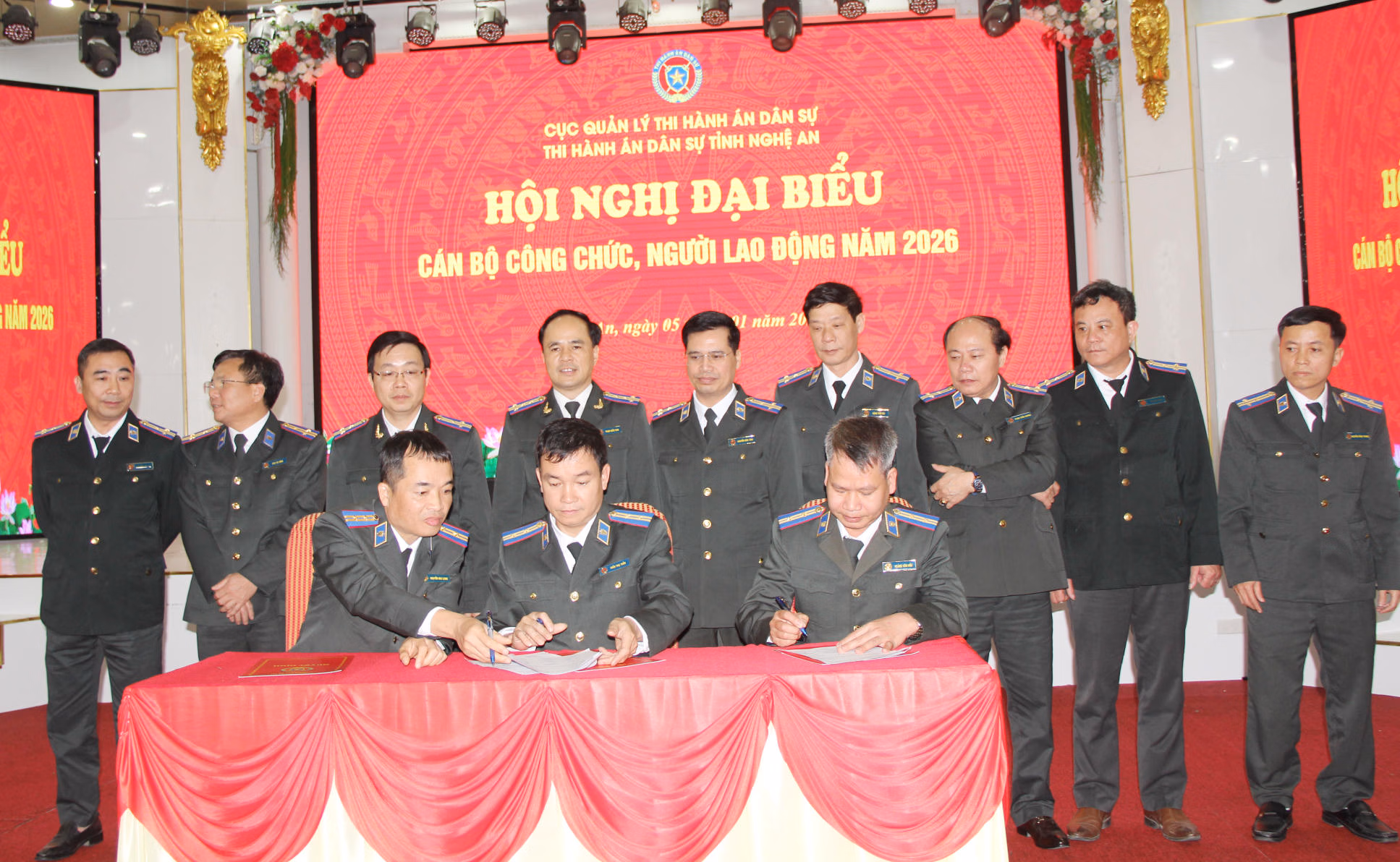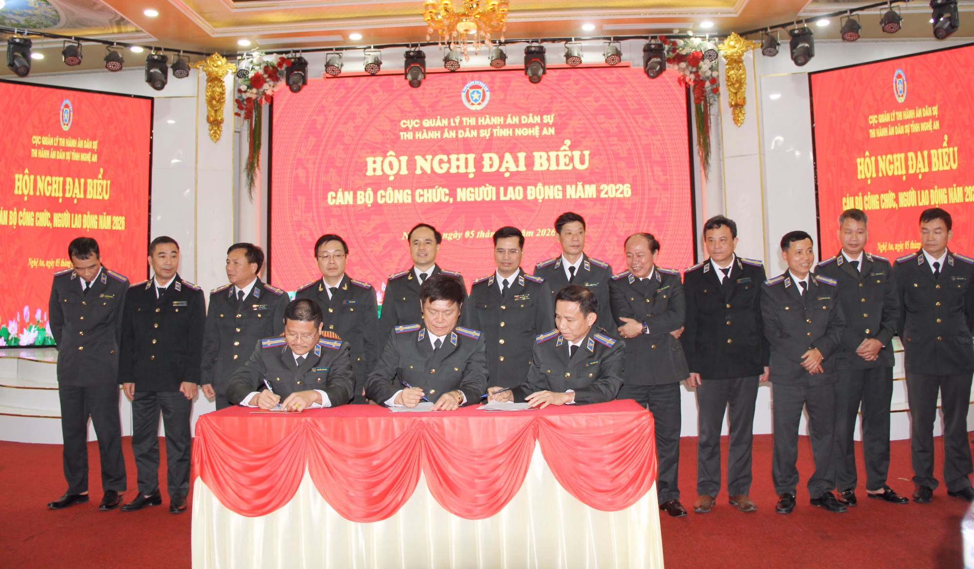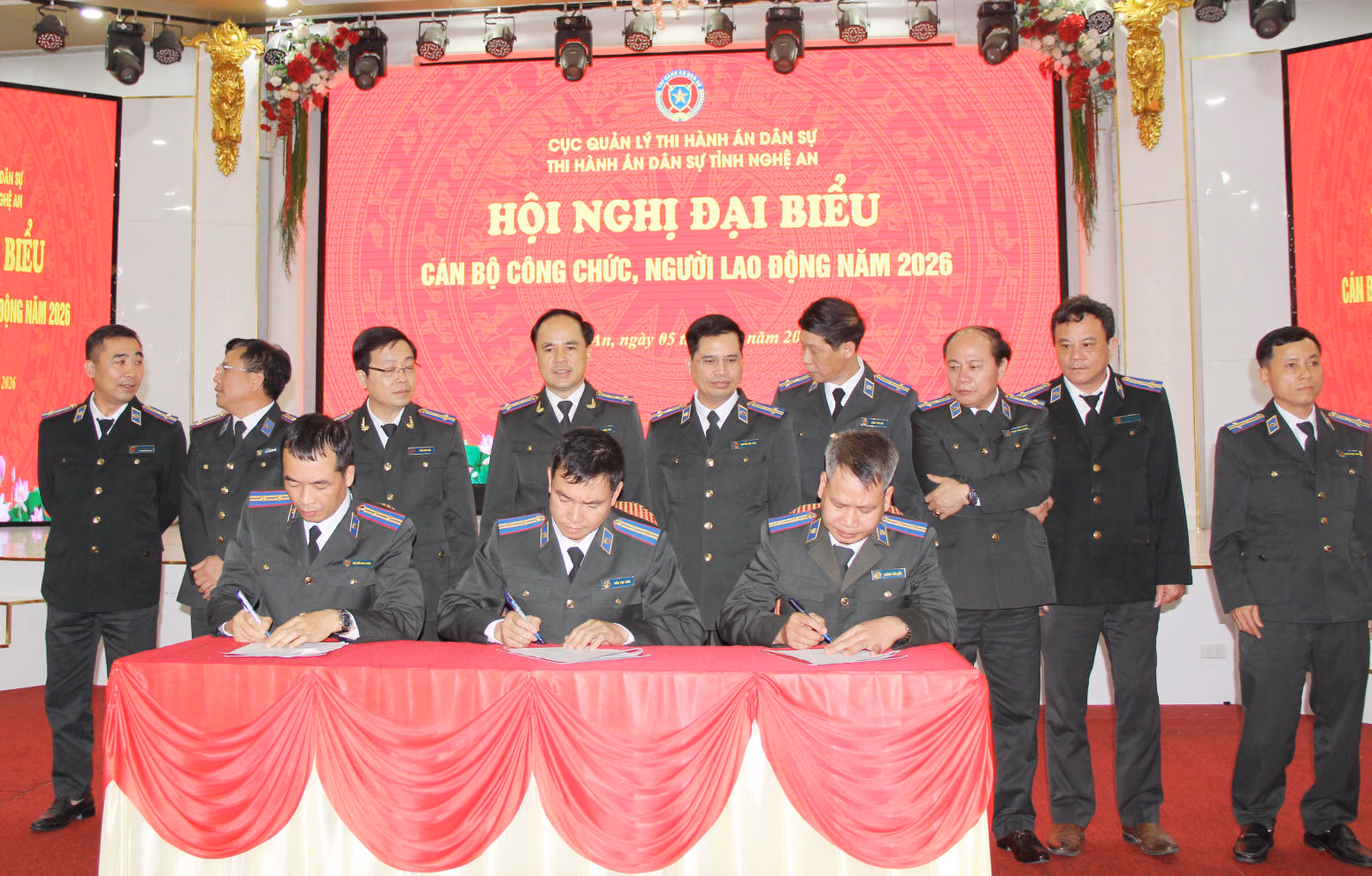 Tại nghị cũng đã tiến hành ký kết giao ước thi đua giữa lãnh đạo THADS tỉnh, các Phòng chuyên môn và các Phòng thi hành án khu vực về công tác năm 2026.