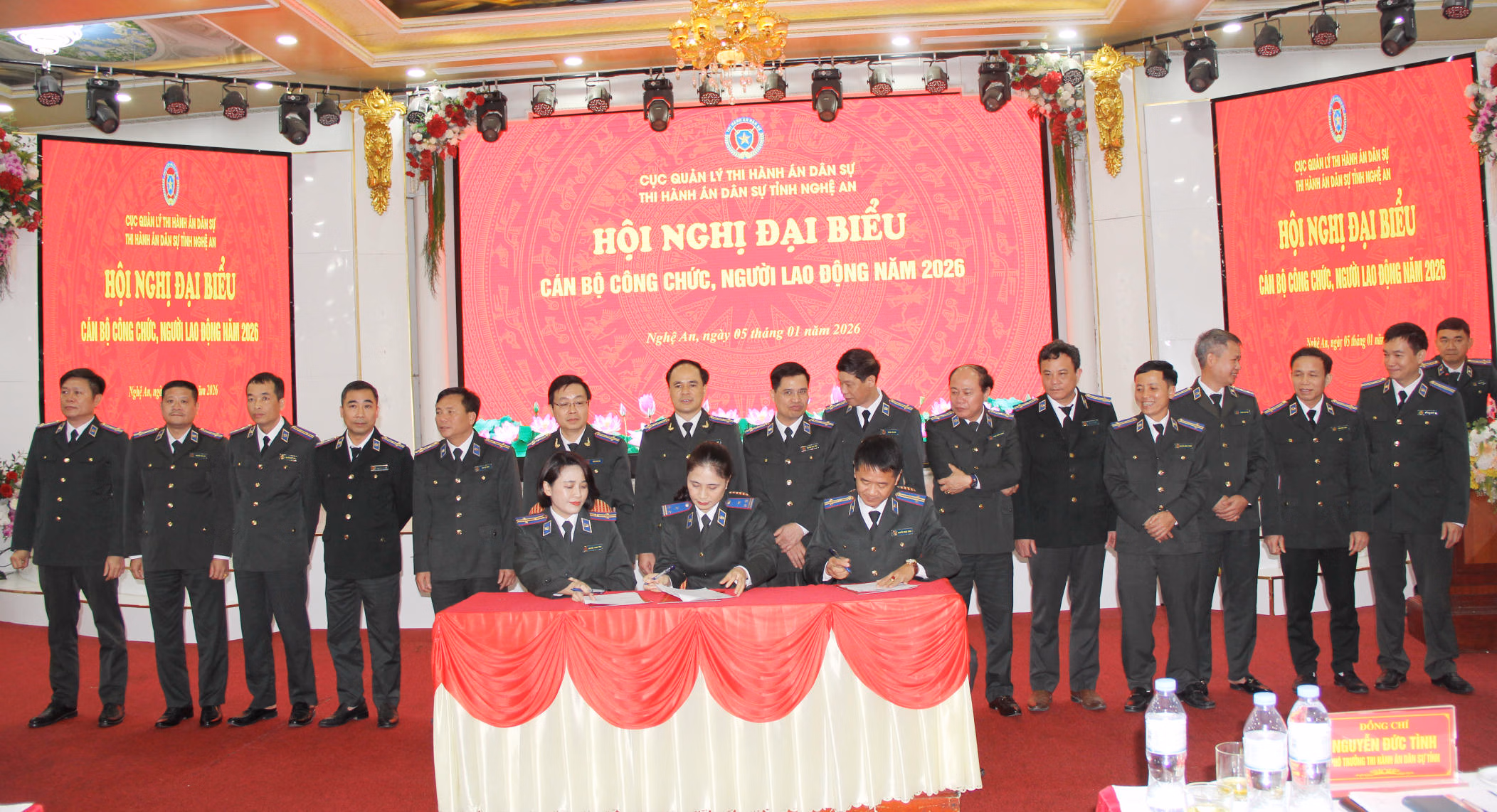 (PLVN) - Ngày 5/1/2026, Thi hành án dân sự tỉnh Nghệ An tổ chức Hội nghị Đại biểu cán bộ công chức, người lao động năm 2026 và Hội nghị giao ban công tác THADS, theo dõi THAHC Quý 1/2026.