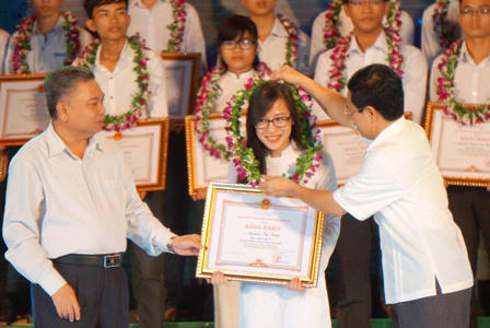 Tại buổi Lễ UBND tỉnh đã trao bằng khen và phần thưởng hai học sinh đạt HCB quốc tế mỗi em 57.500.000 đồng, học sinh đạt HCV Châu Á là 46.000.000 đồng. Học sinh giỏi quốc gia 11.500.000đ/em đạt giải nhất; 8.050,000đ cho các em đạt giải Nhì, Giải ba là 5.750.000đ và giải Khuyến khích là 2.300.000đ. Riêng những em đạt điểm cao tại Kỳ thi THPT quốc gia là mỗi em 10.000.000 đồng.