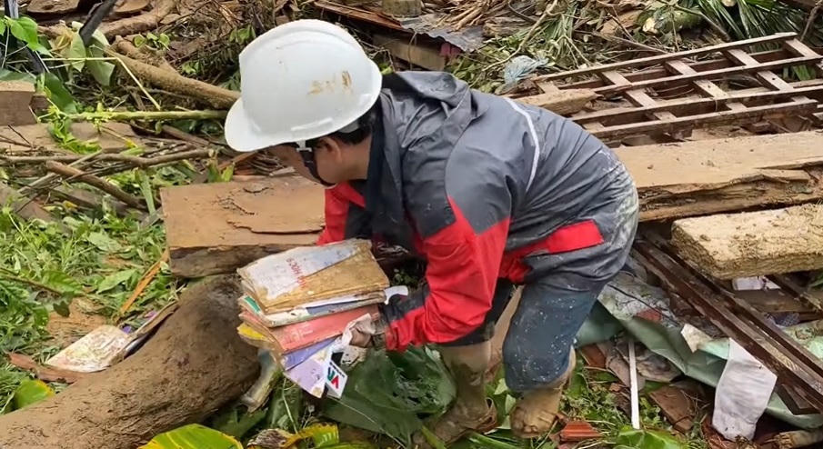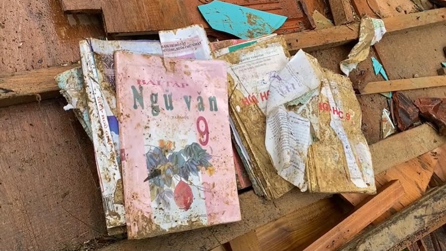 Nghẹn lòng cảnh sách vở học sinh chôn vùi ở Trà Leng