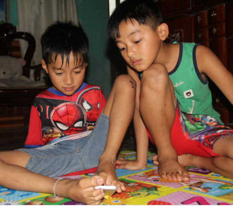 Hai đứa trẻ năm nay đã 10 tuổi, khỏe mạnh, tuy nhiên, cậu bé Tiến Anh không được may mắn khi bị khuyết đôi tay từ lúc lọt lòng.Dẫu vậy, mặc dù còn ít tuổi, nhưng cả hai rất ý thức được về tình anh em, ruột thịt. Hai anh em vẫn luôn thương yêu, gắn kết nhau, giúp đỡ nhau.