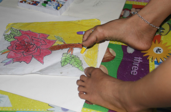 Nghị lực phi thường của cậu bé khuyết tay vẽ cuộc đời bằng đôi chân kỳ diệu