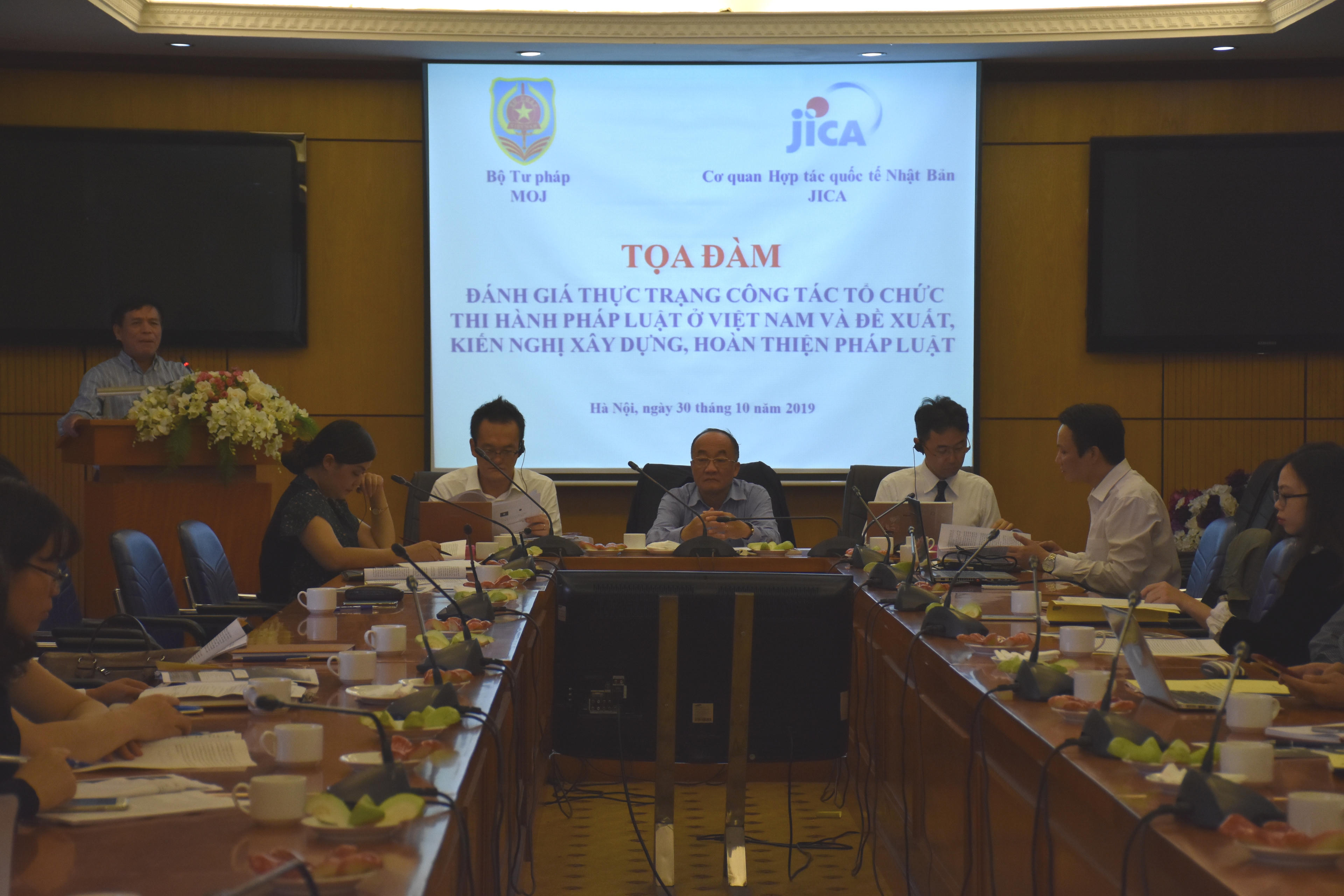 (PLVN) - Ngày 30/10, Bộ Tư pháp chủ trì, phối hợp với dự án JICA tổ chức Tọa đàm “Đánh giá thực trạng công tác tổ chức thi hành pháp luật tại Việt Nam và đề xuất, kiến nghị xây dựng, hoàn thiện pháp luật”.