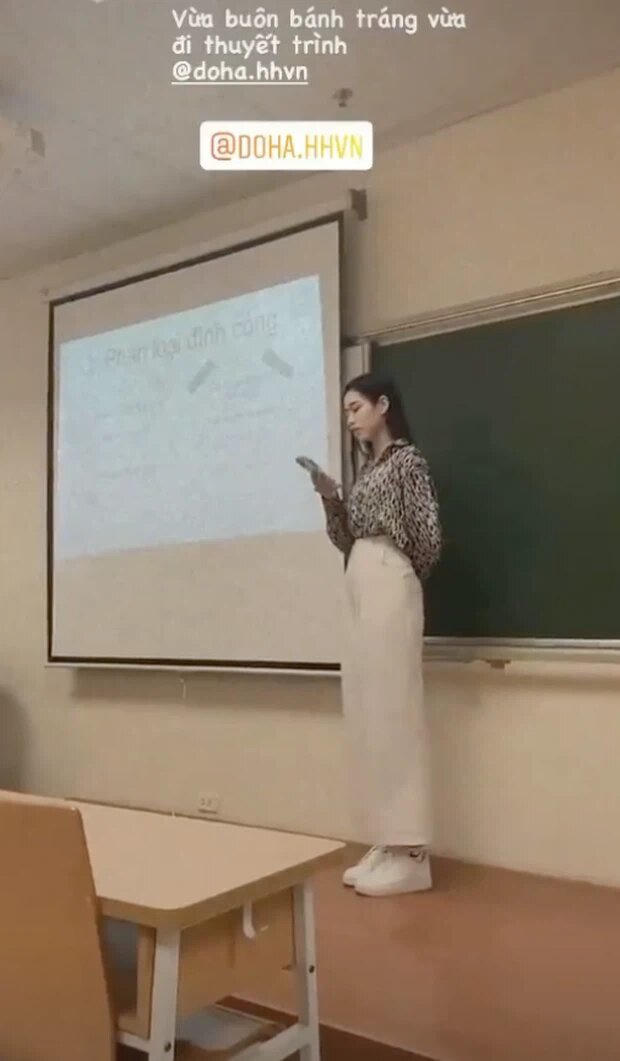 | Đỗ Thị Hà bị bạn học chụp lại khoảnh khắc cô đang đứng trên bục thuyết trình trước các bạn trong lớp. (Ảnh: Chụp màn hình) |