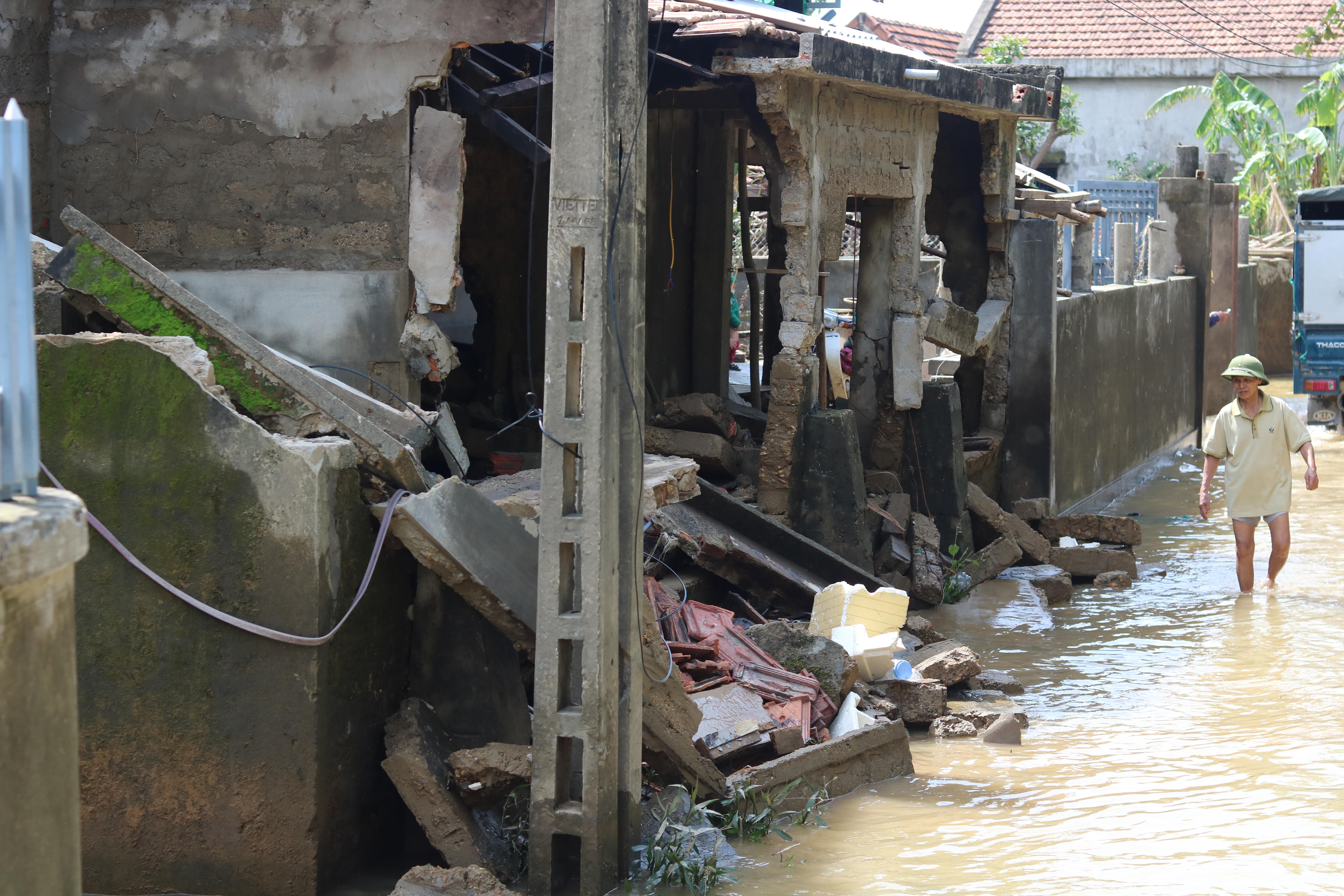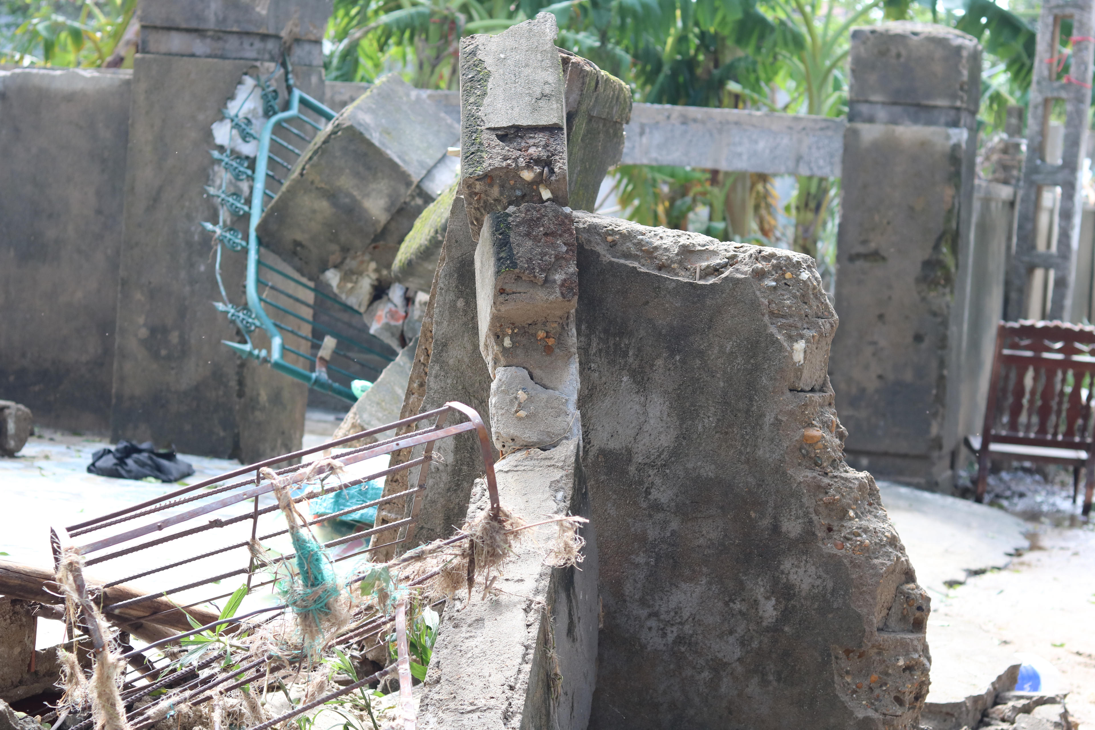 Rất nhiều nhà cửa, tường rào bị sóng đánh sập, trong đó huyện Lệ Thủy có đến 11 nhà bị sóng lũ đánh sập
