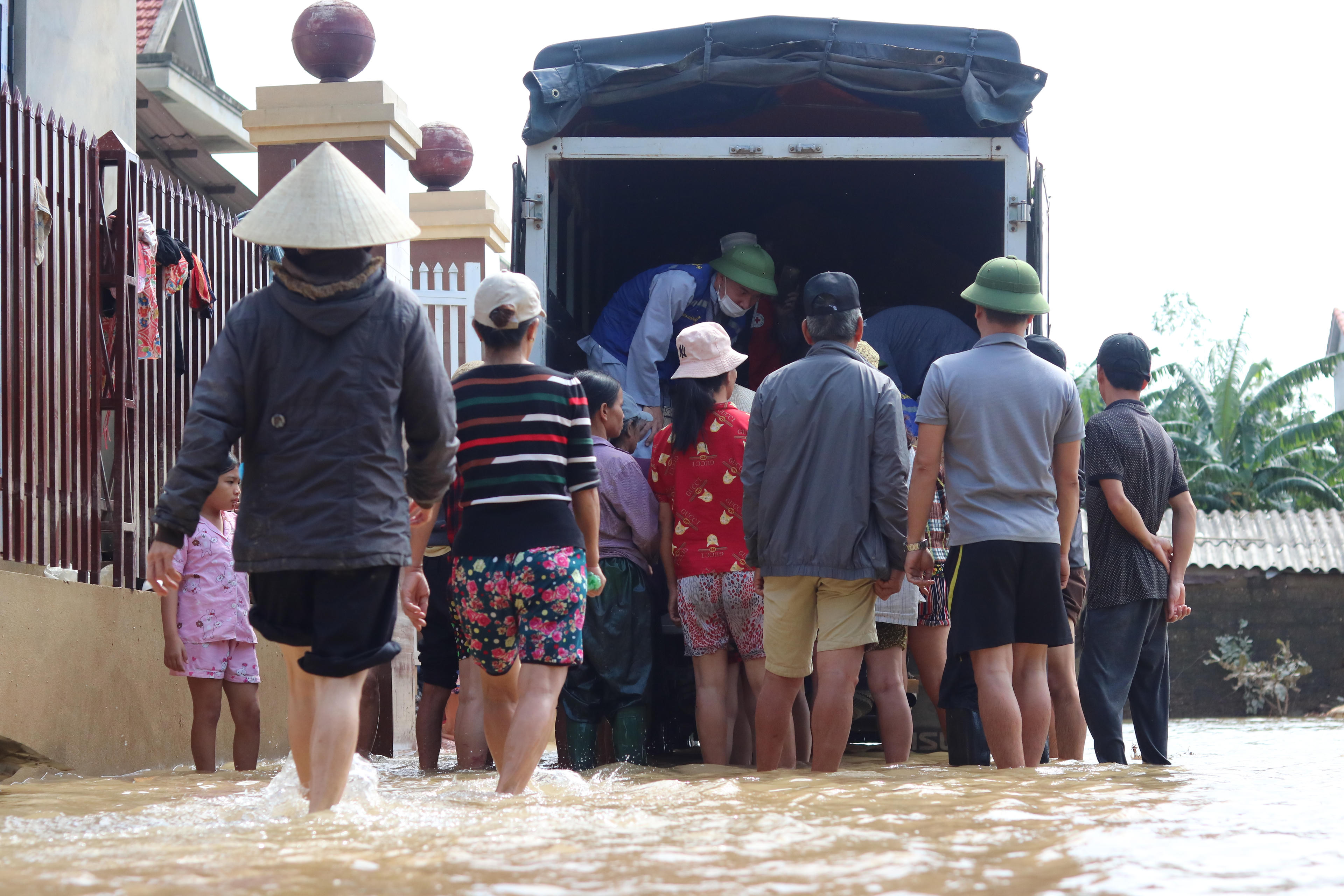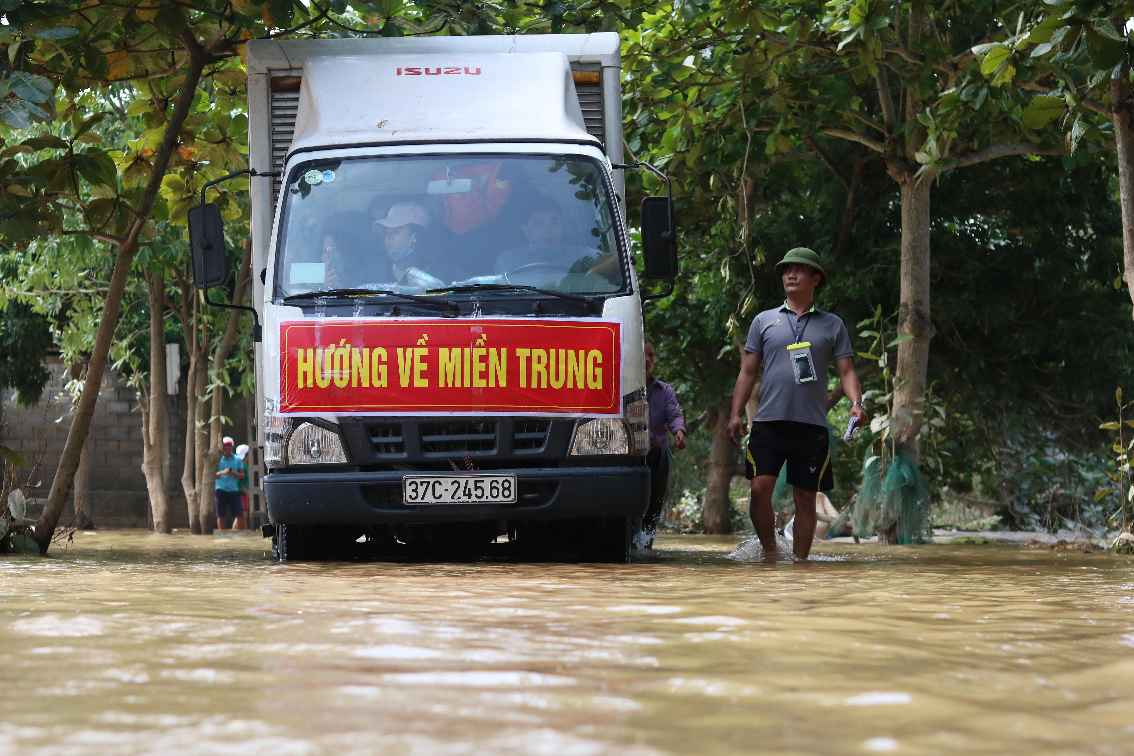 Những đoàn xe thiện nguyện đang 'lội' vào những khu vực ngập sâu để trao nhu yếu phẩm cho người dân.