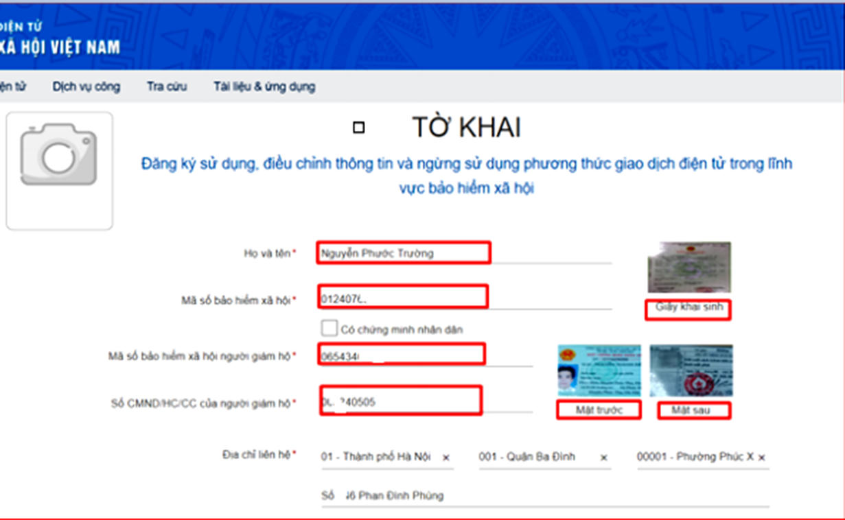 Bước 5: Thực hiện kê khai thông tin đăng ký giao dịch điện tử với cơ quan BHXH cho cá nhân dưới 18 tuổi theo mẫu số 01.