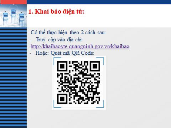 Theo đó, để thay thế cho hình thức khai báo y tế thủ công bằng phiếu, tiết kiệm thời gian và tránh tập trung đông người, người dân có nhu cầu ra, vào Quảng Ninh có thể khai báo y tế điện tử ở bất cứ nơi đâu. Với các thiết bị máy vi tính, laptop, điện thoại thông minh tại http://khaibaoyte.quangninh.gov.vn hoặc sử dụng zalo quét mã QR đã có sẵn để truy cập. Sau khi khai báo thành công, người dân sẽ được cấp một mã QR riêng để kiểm soát khi đi qua các chốt kiểm soát vào tỉnh và các địa phương trong tỉnh.