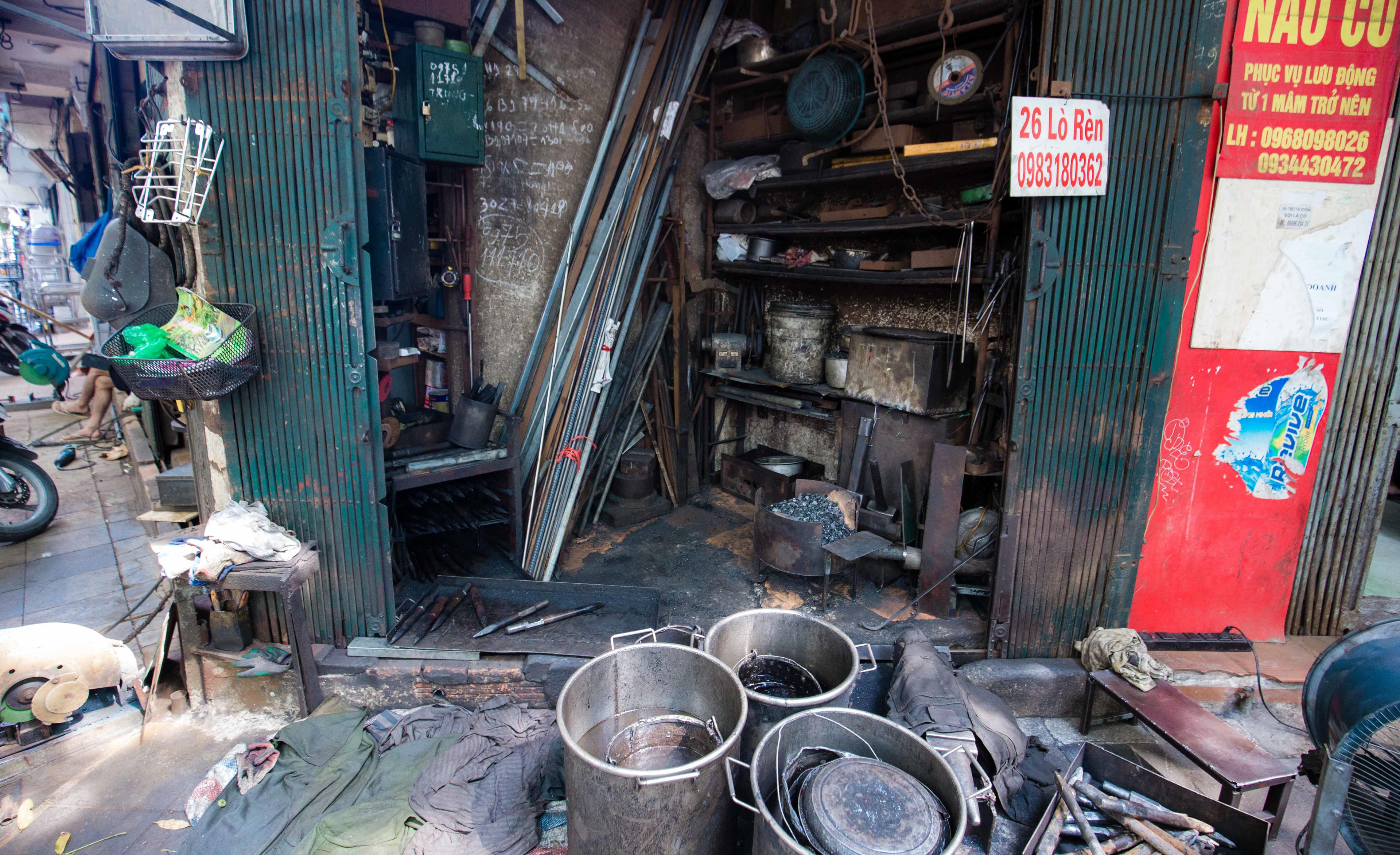 Trong không gian nhỏ hẹp 3m2 tại ngôi nhà số 26 (phố Lò Rèn, TP Hà Nội) đều đặn hàng ngày ông Nguyễn Phương Hùng (60 tuổi) vẫn giữ cho chiếc lò rèn thủ công của gia đình đỏ lửa. Cả con phố nghề truyền thống nay chỉ còn duy nhất cửa hàng của ông Hùng làm ra những chiếc búa, liềm, dao, kéo bên lò than rực lửa.