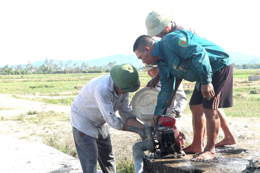 Các ruộng lúa xung quanh cũng trong tình trạng thiếu nước. Sốt ruột, lo lắng, nhiều hộ đã túc trực để bơm nước vào. Tuy nhiên, việc bơm nước trong thời điểm này cũng không dễ dàng khi lượng nước ở kênh càng ít dần và có nguy cơ bị nước mặn xâm nhập.