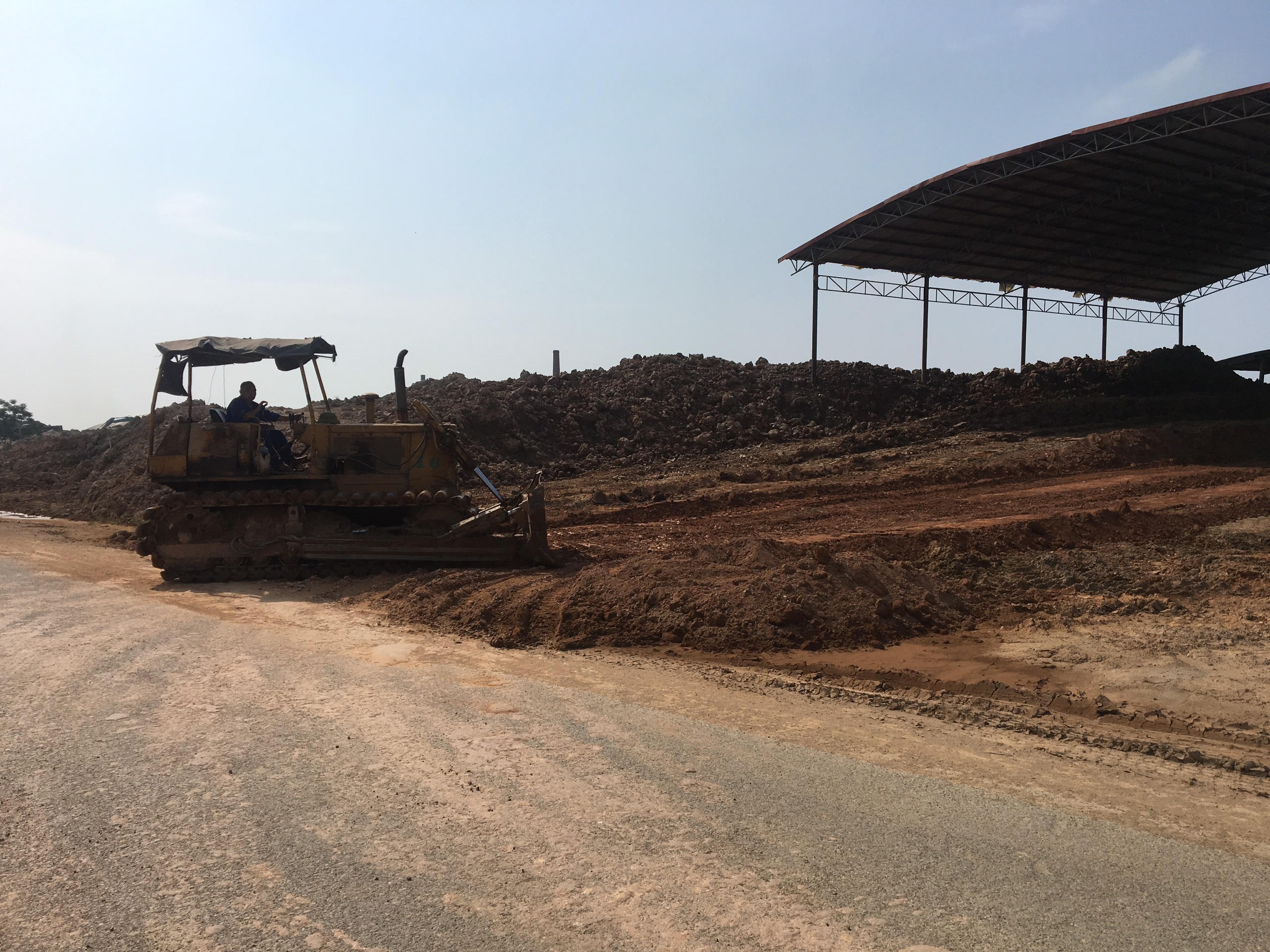 Khu vực tập kết nguyên liệu đất được chất thành những đống to không được che chắn, tường bao. Chính vì vậy nên đất bị xô sạt xuống đường gây ảnh hưởng an toàn giao thông. Người dân địa phương rất bức xúc về tình trạng này.